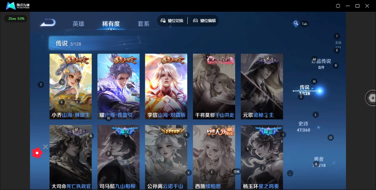 - [11818159]V7 1典藏 1珍品传说 8传说 124英雄 131皮肤 可修改实名 优质装备:杀手不太冷,怪盗基德,冠军飞将,云鹰飞将(小将军),久胜战神,一念神魔,地狱火,玄雷天君 传说皮:幻光神枪 限定皮:愿照·九州拓(澜年限),梅西,飞衡(韩信年限),天狼狩猎者,青春决赛季,神奇女侠 史诗皮:苍鳞隐世,化蝶舞,龙之律动,茶境仙,百相守梦-黄忠,白龙吟,特工魅影,千年之狐,猫狗日记-大乔,水果甜心,星夜王子,功夫厨神,暗隐猎兽者,幽灵船长,鬼剑武藏,乐园奇幻夜,舞动绿茵,乘风破浪,逐浪之夏,水晶猎龙者,曙光守护者,鹰眼统帅,魅力维加斯,未来纪元-赵云