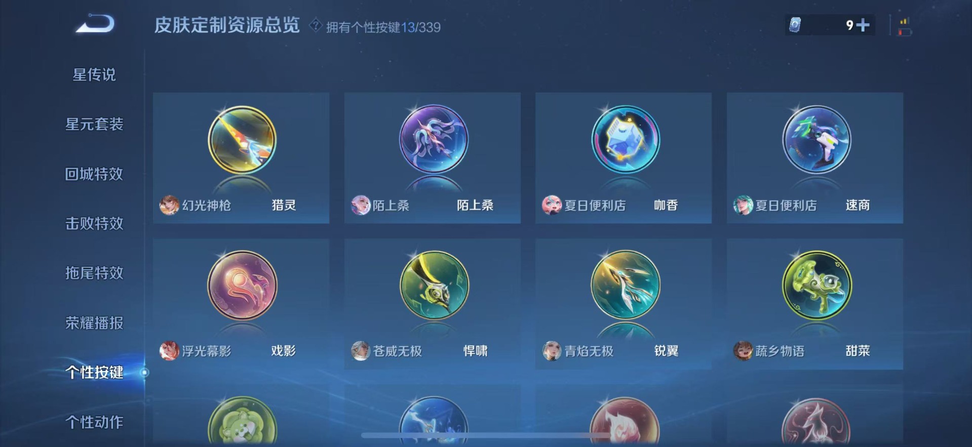 小乔时之魔女,不知火舞花合斗,曜器灵·螭龙剑,韩信群星魔术团,甄姬雪境奇遇,武则天神器·明辉仪,李白碎月剑心,妲己青丘·九尾,瑶真我赫兹