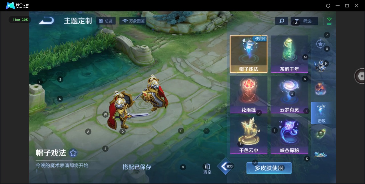 夏侯惇乘风破浪,阿轲节奏热浪,铠曙光守护者,赵怀真器灵·浮梦炉,露娜紫霞仙子,诸葛亮黄金分割率,刘禅绅士熊喵,宫本武藏鬼剑武藏,兰陵王暗隐猎兽者,李白谪仙醉月,花木兰水晶猎龙者,安琪拉心灵骇客,蒙犽百解令,嬴政摇滚巨星,墨子金属风暴,澜赏金猎手,嫦娥拒霜思,钟馗乐园奇幻夜