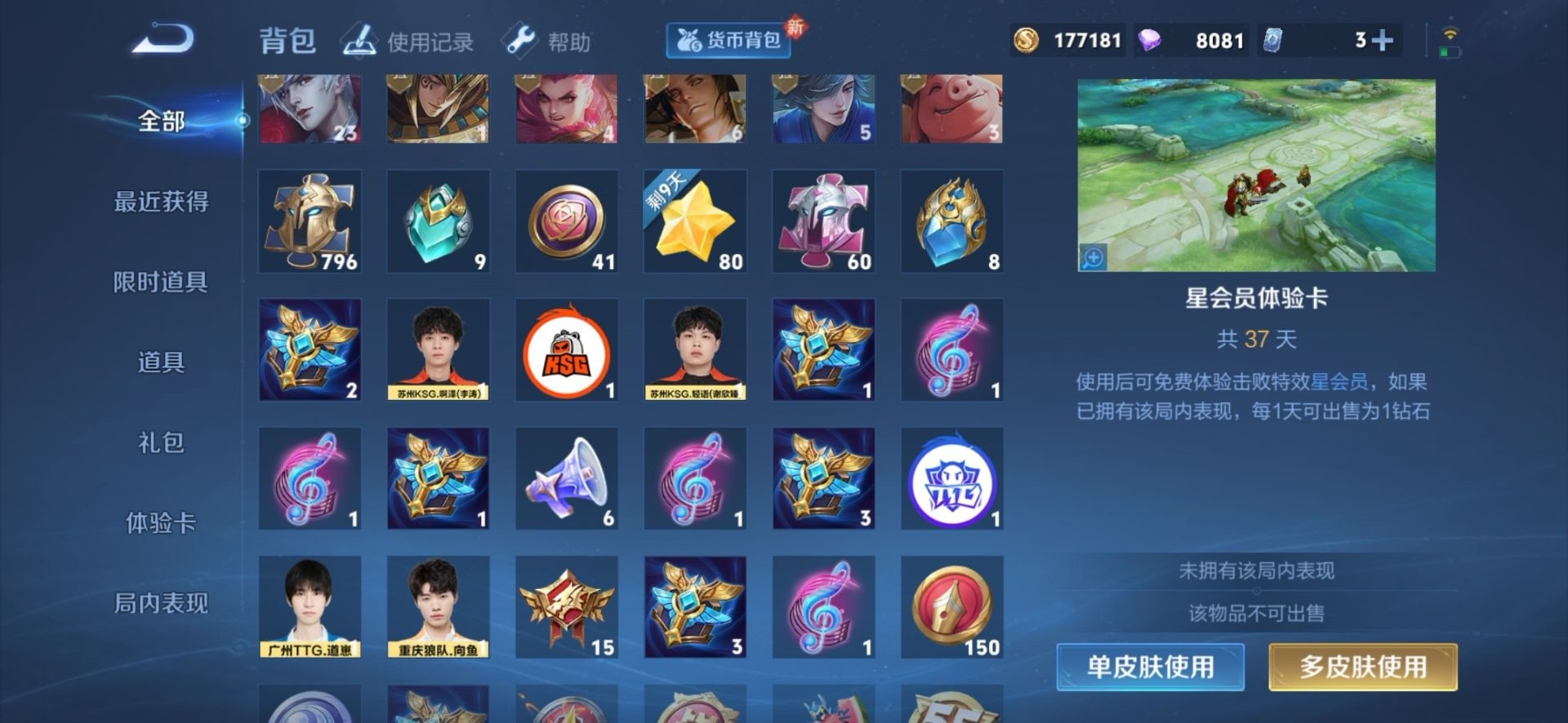 - [12087971]5橙皮 1金皮 3紫皮 26皮肤 26英雄 69卡面 485已用源晶 白银 优质装备:狂徒-塑水宗,幻影-781-A协议,幻影-奇点,狂徒-紫阙金琅,正义-塑水宗,冥驹-离子武器,落英飞旋,鬼魅-耀鳞威龙 近战武器皮肤:短剑-流星兵团