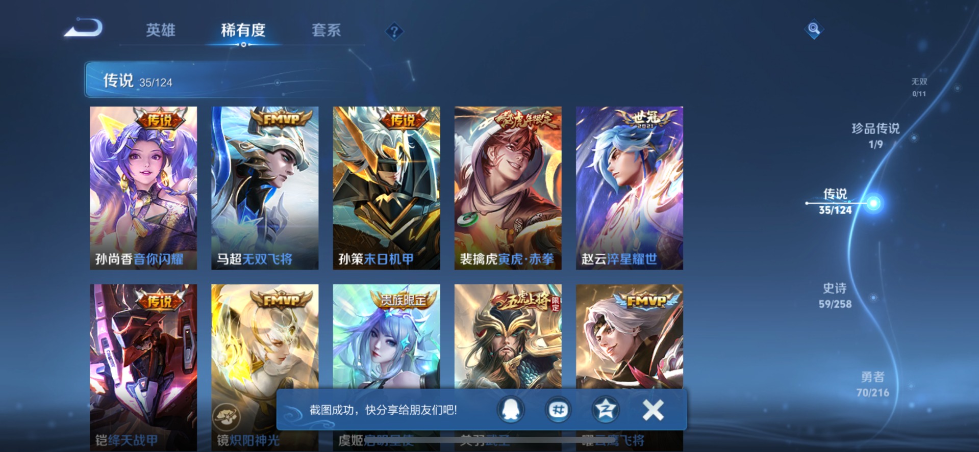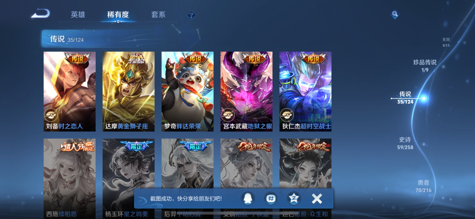 - [12292946]V8 1典藏 8传说 124英雄 201皮肤 可修改实名 优质装备:星域神启(倪克斯贼亮),冠军飞将,猫影幻舞,云霓雀翎,音你心动-小乔,地狱之眼,神器·狴犴令,涂山容容 珍宝阁皮:妄想食味 限定皮:星穹之声,遇见飞天,五谷丰年,梁祝,孙行者 史诗皮:紫霞仙子,特工魅影,江河有灵,百解令(蒙犽),晚萤,魅语,无限星赏官,冰冠公主,青蛇,暗夜猫娘,末日机甲-吕布,猫狗日记-孙策,时之恋人-孙尚香,节奏热浪,女仆咖啡,摇滚巨星,水果甜心,绅士熊喵,心灵骇客,功夫厨神,德古拉伯爵,暗隐猎兽者,幽灵船长,鬼剑武藏,舞动绿茵,拒霜思,缤纷独角兽,乘风破浪,逐浪之夏,水晶猎龙者,箭羽风息,金属风暴,圣诞狂欢,圣诞恋歌,鹰眼统帅,无心,未来纪元-赵云