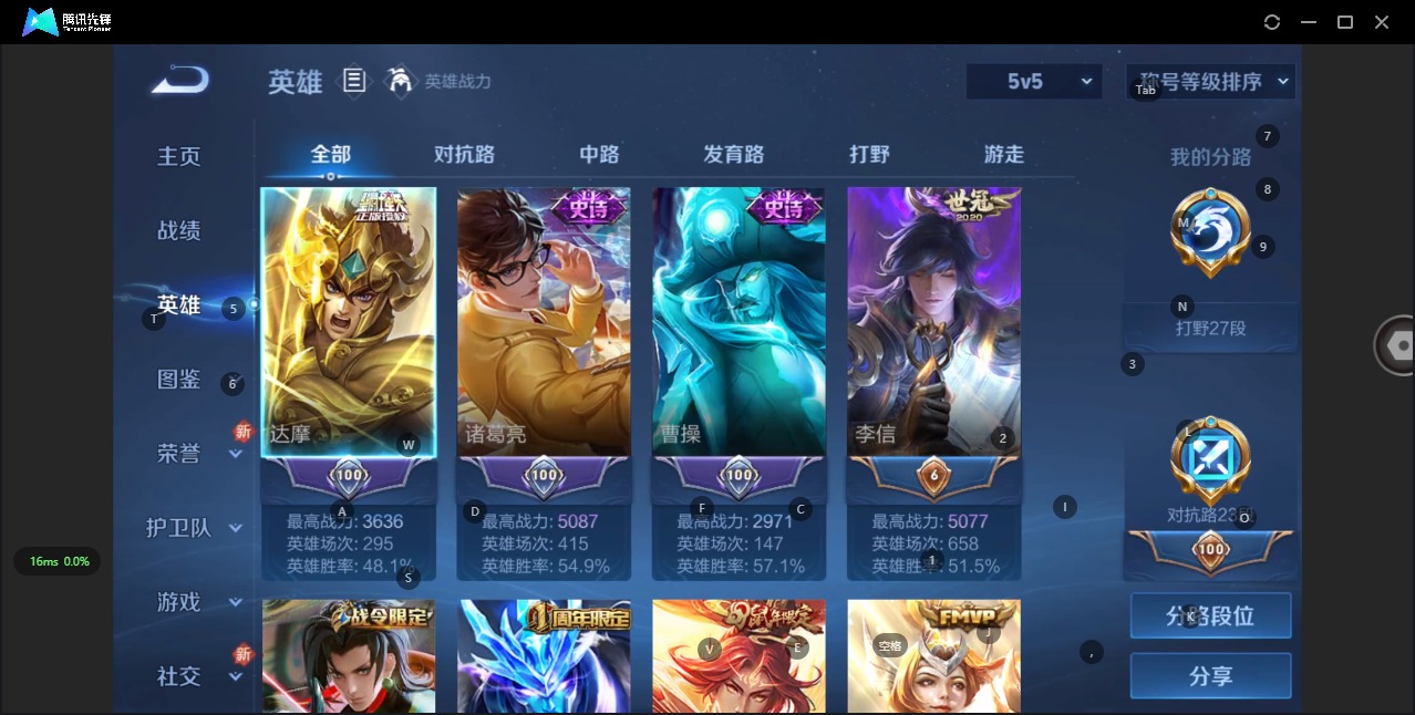 - PX_2085574-89v安卓QQ/最强王者/367皮肤/124英雄/3典藏/0珍品无双/0无双/0珍品传说/24传说/112史诗/8稀有英雄 【3 典藏皮肤】全息碎影 孙悟空,弑枪猎影 韩信,拾光映像 瑶, 【24 传说皮肤】武圣 关羽,启明星使 虞姬,逐花归海 澜,白虎志 百里玄策,零号·赤焰 孙悟空,地狱火 孙悟空,神器·狴犴令 狄仁杰,凤求凰 李白,落雪白狼 亚连,地狱之眼 宫本武藏,祈