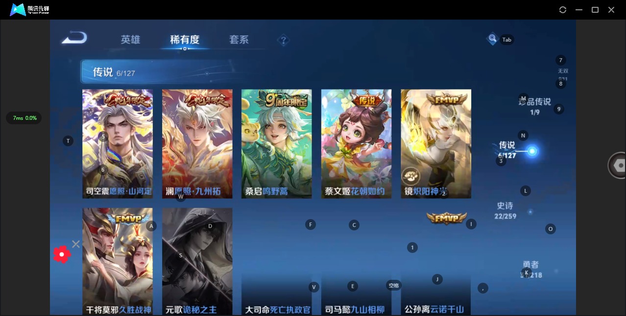 - [12025866]V7 1典藏 3珍品传说 11传说 123英雄 247皮肤 可修改实名 优质装备:拾光映像(瑶典藏),怪盗基德,酷洛米之心,大耳狗之梦,黄金射手座,猫影幻舞,音你心动-周瑜,游龙清影(小青龙),霜月吟,朵莉亚心动手记,涂山容容 传说皮:貂蝉曦玄引,续相思,幻光神枪 珍宝阁皮:蔷薇恋人 限定皮:愿照·福禄聚(蔡文姬年限),逐霄战戟,陌上桑,鸣野蒿,高山流水 史诗皮:鸭鸭历险记-刘禅,化蝶舞,星界战将,龙之律动,茶境仙,幻珠鲛人,炽弈燎原,破空之剑,战舞者,涂山红红,东方月初,蒙犽顽岩魄,芈月浮光幕影,上官婉儿群星魔术团,奇遇星旅,蔬乡物语(鲁班七号),乘龙·忆丹青(大乔年限),百相守梦-百里守约,百相守梦-黄忠,织梦人,遇见神鹿,紫霞仙子,特工魅影,江河有灵,高渐离燃音魔法,冰冠公主,青蛇,白蛇,末日机甲-吕布,猫狗日记-孙策,猫狗日记-大乔,乱世虎臣,节奏热浪,女仆咖啡,水果甜心,星夜王子,心灵骇客,暗隐猎兽者,鬼剑武藏,心灵战警,地狱岩魂,纤云弄巧,拒霜思,缤纷独角兽,逐浪之夏,月团寄思,水晶猎龙者,箭羽风息,金属风暴,原初追逐者,圣诞恋歌,鹰眼统帅,魅力维加斯,未来纪元-赵云