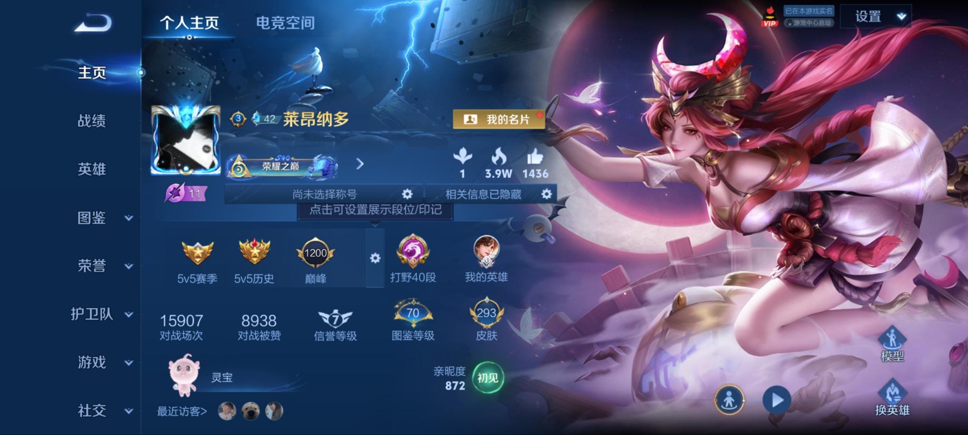 - PX_2096863-实名: 可修改 贵族等级: V7 英雄数: 124 皮肤数: 235 荣耀水晶: 赤影疾锋 星传说: 未来机甲 传说皮: 绛天战甲,猫影幻舞,云霓雀翎,末日机甲-孙尚香,地狱火,音你心动-小乔,零号·赤焰,音你心动-周瑜,李逍遥,无双飞将,炽翼辉光 限定皮: 遇见飞天,祈雪灵祝,游园惊梦,梁祝,时雨天司,白晶晶,天狼溯光者,冰霜恋舞曲,默契交锋-兰陵王,如梦令-后羿,大圣娶亲