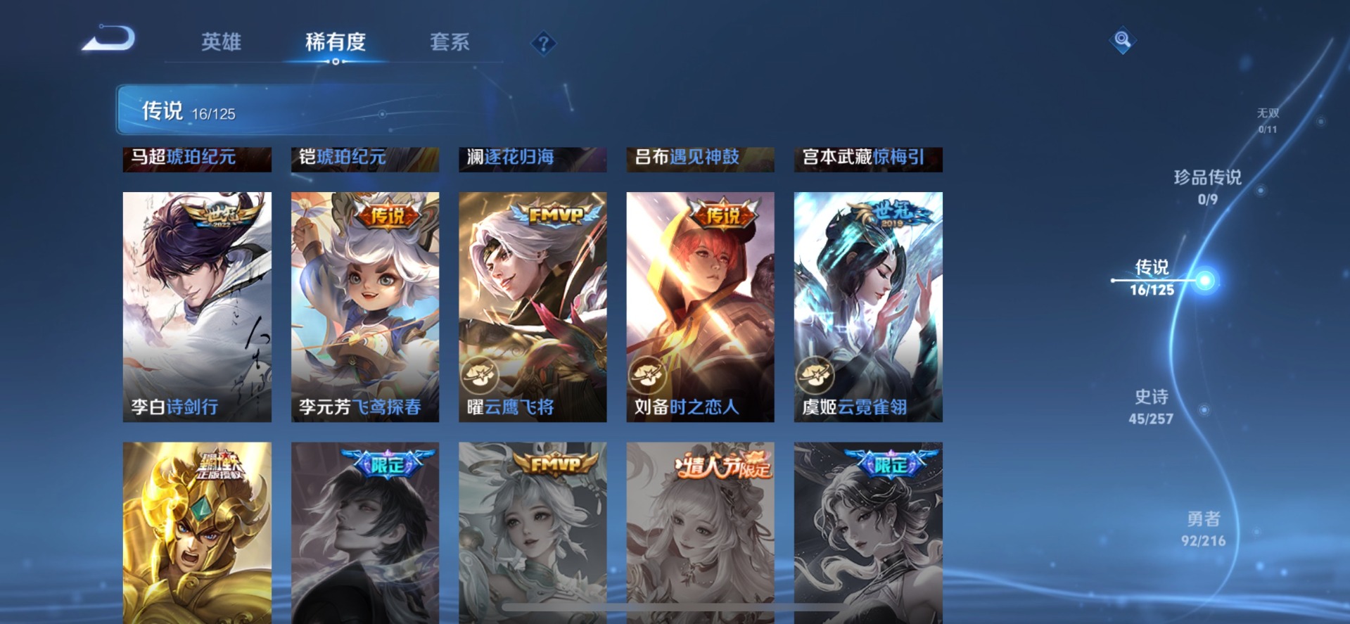 - PX_2102289-实名: 可修改 贵族等级: V4 英雄数: 98 皮肤数: 64 限定皮: 梁祝,至美·乘鲤谣,鸣野蒿