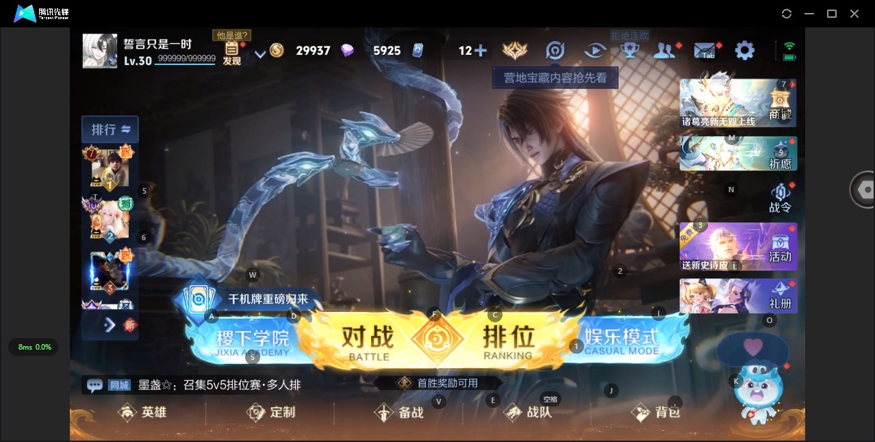 - [11549795]V8 1典藏 8传说 123英雄 218皮肤 可修改实名 优质装备:星域神启(倪克斯贼亮),一念神魔,末日机甲-孙尚香(绿蚂蚱),地狱火,淬星耀世,超时空战士-狄仁杰,无双飞将,山海·苍雷引(电光曜子) 珍宝阁皮:胡桃夹子,玩趣恶龙 限定皮:傲雪梅枪,遇见飞天,高山流水,五谷丰年,梁祝,辉光之辰,真爱至上,孙行者,匿光追影者 史诗皮:百相守梦-百里守约,星界特工,百相守梦-黄忠,紫霞仙子,苍穹之光,电玩小子(小书包),黄金分割率,特工魅影,千年之狐,江河有灵,蒙恬荣光圣徽,冰冠公主,龙骑士(小龙虾),末日机甲-吕布,猫狗日记-孙策,乱世虎臣,节奏热浪,摇滚巨星,水果甜心,绅士熊喵,星夜王子,心灵骇客,功夫厨神,德古拉伯爵,暗隐猎兽者,幽灵船长,鬼剑武藏,心灵战警,乘风破浪,逐浪之夏,水晶猎龙者,曙光守护者,箭羽风息,金属风暴,原初追逐者,圣诞狂欢,圣诞恋歌,鹰眼统帅,魅力维加斯,黎明之约,无心,未来纪元-赵云
