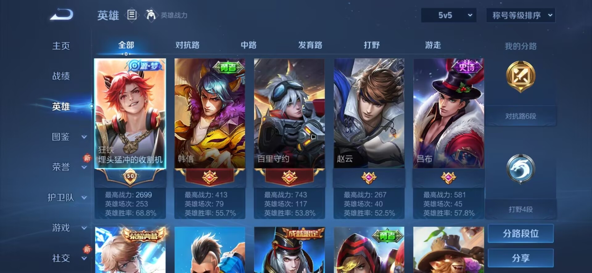 - PX_2096855-贵族等级: V4 英雄数: 51 皮肤数: 18 限定皮: 五谷丰年