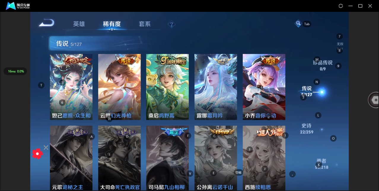 - [11231222]V8 3典藏 5传说 124英雄 248皮肤 可修改实名 荣耀水晶:鸣剑·曳影,九霄神辉(木兰典藏),全息碎影(猴子典藏) 传说皮:地狱火,末日机甲-孙尚香(绿蚂蚱),冠军飞将 珍宝阁皮:妄想食味,玩趣恶龙 限定皮:逐霄战戟,至尊宝,凤求凰(白切鸡),飞衡(韩信年限),高山流水,五谷丰年,冰锋战神,梁祝,逐梦之星,李小龙 史诗皮:鸭鸭历险记-刘禅,战舞者,白龙吟,黄金分割率,特工魅影,千年之狐,高渐离燃音魔法,百解令(蒙犽),偶像歌手,末日机甲-吕布,猫狗日记-孙策,乱世虎臣,女仆咖啡,摇滚巨星,水果甜心,心灵骇客,功夫厨神,德古拉伯爵,暗隐猎兽者,幽灵船长,地狱岩魂,拒霜思,缤纷独角兽,乘风破浪,逐浪之夏,水晶猎龙者,曙光守护者,原初追逐者,圣诞狂欢,圣诞恋歌,鹰眼统帅,魅力维加斯,无心,未来纪元-赵云