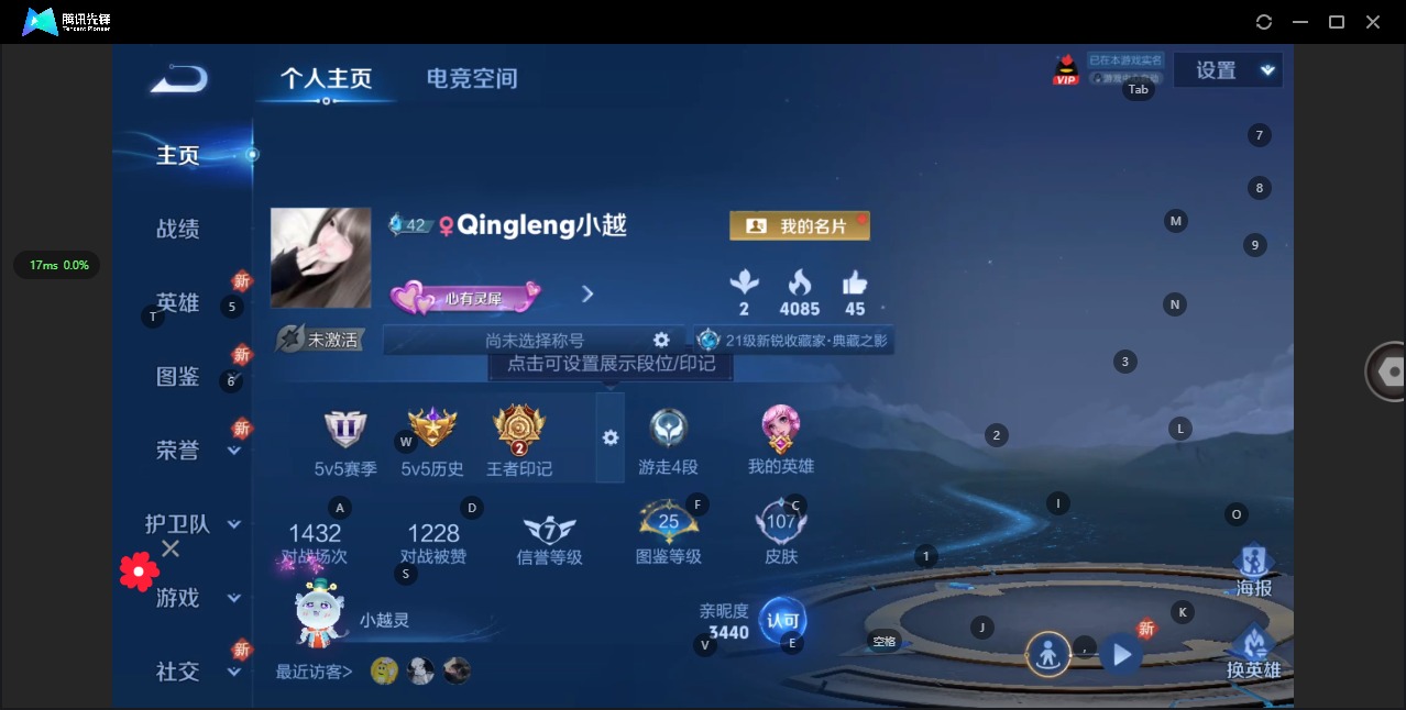 - PX_2066673-实名: 可修改 贵族等级: V4 英雄数: 120 皮肤数: 90 珍品传说: 怪盗基德 传说皮: 一念神魔 限定皮: 鸣野蒿,逐霄战戟