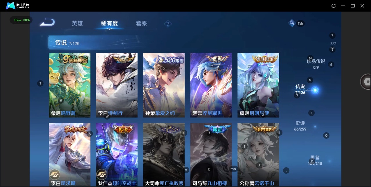 - [11743425]V7 1无双 2珍品传说 14传说 124英雄 221皮肤 可修改实名 优质装备:器灵·螭龙剑,江户川柯南,怪盗基德,云鹰飞将(小将军),久胜战神,末日机甲-孙尚香(绿蚂蚱),乞巧织情,时之恋人-刘备(电焊工),超时空战士-狄仁杰,无双飞将,记忆之芯(机甲兔),澜逐花归海 传说皮:典韦战鼓燎原,幻光神枪 珍宝阁皮:玩趣恶龙 限定皮:愿照·九州拓(澜年限),逐霄战戟,陌上桑,鸣野蒿,高山流水,诗剑行,李小龙,孙行者,大圣娶亲 史诗皮:化蝶舞,茶境仙,破空之剑,战舞者,东方月初,蒙犽顽岩魄,芈月浮光幕影,百相守梦-百里守约,星界特工,百相守梦-黄忠,紫霞仙子,黄金分割率,千年之狐,真我赫兹(百里守约),魅语,百解令(蒙犽),偶像歌手,龙骑士(小龙虾),节奏热浪,修罗,水果甜心,绅士熊喵,星夜王子,德古拉伯爵,暗隐猎兽者,幽灵船长,鬼剑武藏,心灵战警,地狱岩魂,纤云弄巧,拒霜思,乘风破浪,逐浪之夏,月团寄思,水晶猎龙者,热力回旋,金属风暴,原初追逐者,圣诞狂欢,圣诞恋歌,鹰眼统帅,魅力维加斯,奇遇舞章,未来纪元-赵云