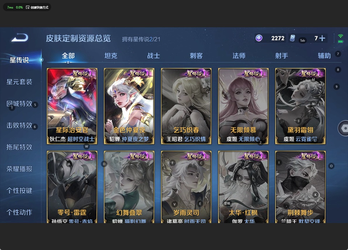 - PX_2089862-22 安卓QQ/永恒钻石/80皮肤/113英雄/0典藏/0珍品无双/0无双/0珍品传说/5传说/17史诗/7稀有英雄 【5 传说皮肤】久胜战神 干将莫邪,冠军飞将 花木兰,幻光神枪 云缨,愿照·山河定 司空震,鸣野蒿 桑启, 【17 史诗皮肤】紫霞仙子 露娜,女仆咖啡 妲己,鹰眼统帅 狄仁杰,李小龙 裴擒虎,特工魅影 百里守约,猫狗日记 孙策,龙之律动 狂铁,皇家上将 赵云,