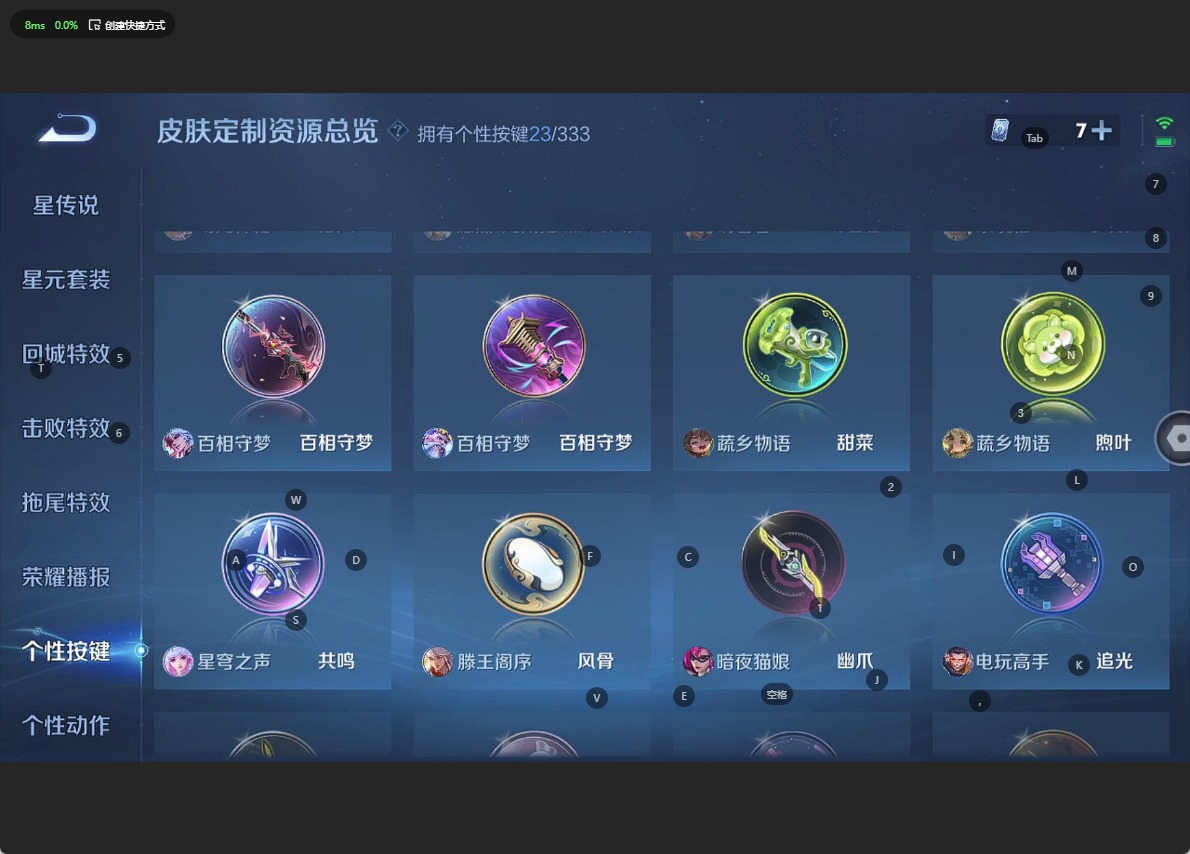 伽罗天狼溯光者,孙膑天狼运算者,诸葛亮时雨天司,上官婉儿梁祝,花木兰默契交锋,桑启鸣野蒿,孙悟空孙行者,芈月白晶晶,韩信逐梦之影,百里守约朱雀志,澜愿照·九州拓,王昭君星穹之声