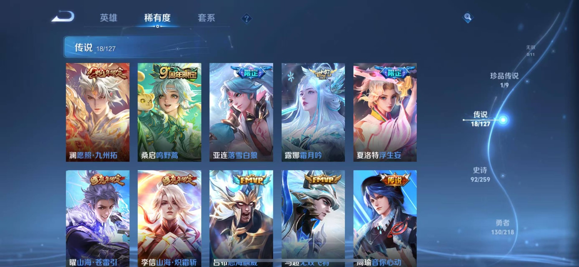 - [12399053]【商品标题】:安卓Q-V8-至尊星耀V段位-124英雄-211皮肤-1典藏-0珍品无双-0无双-0珍品传说-25传说-74史诗 【荣耀典藏】:貂蝉幻阙歌 【传说皮肤】:女娲愿照千秋盛,虞姬愿照岁时盈,桑启鸣野蒿,宫本武藏惊梅引,澜电玩雷克斯,花木兰燃星之曲,孙悟空齐天大圣,曜山海苍雷引,李信山海炽霜斩,吕布怒海麟威,李白诗剑行,娜可露露前尘镜,马可波罗深海之息,后羿无尽星芒,马超无双飞将,诸葛亮时雨天司,铠绛天战甲,虞姬启明星使,曜云鹰飞将,李信一念神魔,刘备时之恋人,貂蝉猫影幻舞,梦奇胖达荣荣,孙尚香末日机甲,宫本武藏地狱之眼 【限定皮肤】:姜子牙天穹之誓,狄仁杰阴阳师,赵云皇家上将,赵云引擎之心,孙尚香蔷薇恋人,庄周高山流水,钟无艳超时空战士,扁鹊奇幻香踪,元歌无心,甄姬游园惊梦,甄姬落雪兰心,典韦岱宗,马可波罗暗影游猎,马可波罗深海之息,狄仁杰魔术师,狄仁杰万华元夜,达摩沙漠行僧,项羽海滩派对,露娜一生所爱,韩信傲雪梅枪,王昭君午后时光,兰陵王金庭之子,花木兰瑞麟志,花木兰燃星之曲,娜可露露前尘镜,孙悟空孙行者,孙悟空齐天大圣,后羿无尽星芒,李元芳云中旅人,虞姬启明星使,钟馗驱傩正仪,杨戬潮玩骑兵,干将莫邪真爱魔法,雅典娜黎明之约,鬼谷子原初探秘者,鬼谷子五谷丰年,诸葛亮时雨天司,铠青龙志,苏烈千军破阵,沈梦溪大漠名商,沈梦溪匿光破解者,裴擒虎擒涛扼浪,狂铁电玩高手,云中君时之祈愿,李信山海炽霜斩,上官婉儿梁祝,嫦娥拒霜思,嫦娥暖冬兔眠,曜山海苍雷引,西施玲珑珍味,鲁班大师探海日志,桑启海盐诗旅,暃星界游侠,戈娅驭风魔法,艾琳女武神,艾琳流音漫舞,司空震地狱燃心,阿古朵江河有灵,张良古海寻踪,蒙犽百解令,鬼谷子天穹祈灯,周瑜熔金海岸 【年限皮肤】:花木兰瑞麟志,铠青龙志,诸葛亮时雨天司,典韦岱宗,李信山海炽霜斩,曜山海苍雷引 【赛季限定】:狄仁杰万华元夜,达摩沙漠行僧,兰陵王金庭之子,张良古海寻踪,李元芳云中旅人,钟馗驱傩正仪,雅典娜黎明之约,鬼谷子原初探秘者,苏烈千军破阵,沈梦溪大漠名商,裴擒虎擒涛扼浪,鲁班大师探海日志,桑启海盐诗旅,鬼谷子天穹祈灯,姜子牙天穹之誓 【战令限定】:钟无艳超时空战士,扁鹊奇幻香踪,甄姬落雪兰心,马可波罗暗影游猎,王昭君午后时光,艾琳流音漫舞,杨戬潮玩骑兵,干将莫邪真爱魔法,狂铁电玩高手,嫦娥暖冬兔眠,西施玲珑珍味,司空震地狱