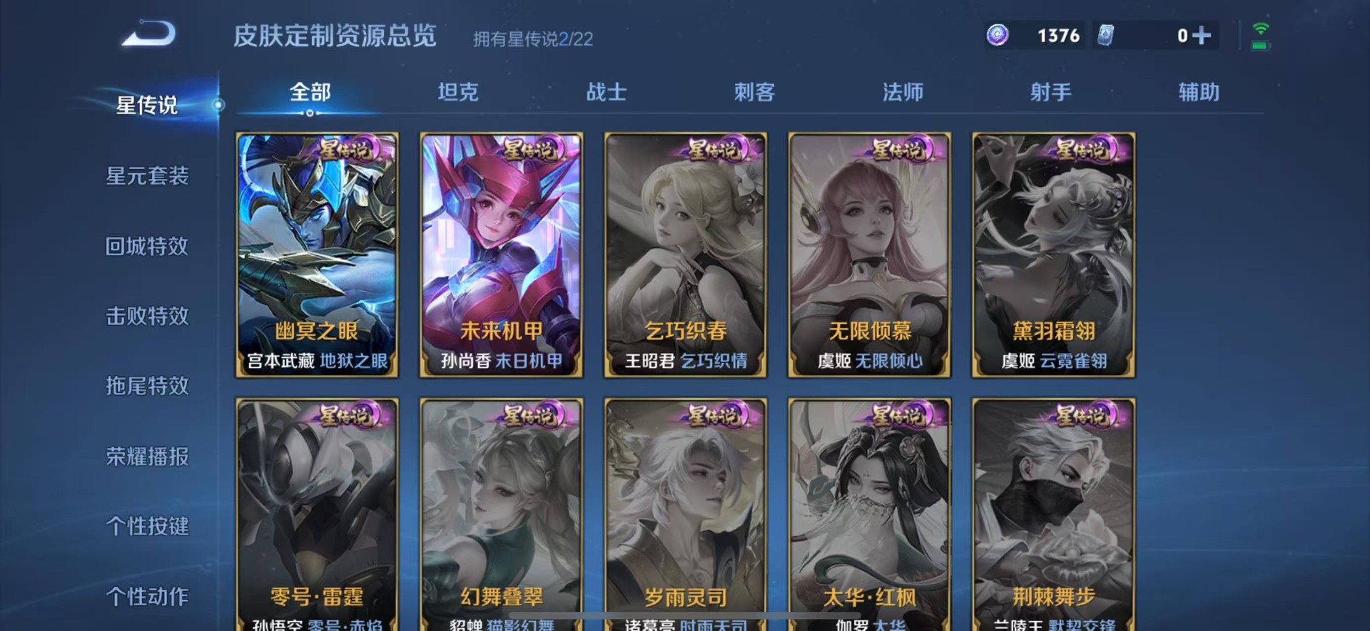 大乔猫狗日记,高渐离燃音魔法,刘邦德古拉伯爵,夏侯惇乘风破浪,阿轲节奏热浪,哪吒雪上飞焰,沈梦溪匿光破解者,铠曙光守护者,刘备百相守梦,曹操幽灵船长,廉颇地狱岩魂,伽罗箭羽风息,小乔缤纷独角兽,孙策猫狗日记,不知火舞魅语,鲁班七号电玩小子,项羽苍穹之光,吕布末日机甲,露娜紫霞仙子,镜真我赫兹,诸葛亮黄金分割率,刘禅电玩·爆裂旋风,司马懿暗渊魔法,刘禅天才门将,刘禅绅士熊喵,宫本武藏鬼剑武藏,兰陵王暗隐猎兽者,貂蝉圣诞恋歌,花木兰水晶猎龙者,夏洛特永昼,安琪拉心灵骇客,蒙犽百解令,艾琳奇遇舞章,白起星夜王子,嬴政摇滚巨星,程咬金功夫厨神,百里玄策原初追逐者,雅典娜冰冠公主,雅典娜黎明之约,百里守约真我赫兹,李元芳逐浪之夏,百里守约特工魅影,墨子金属风暴,蔡文姬舞动绿茵,澜赏金猎手,娜可露露晚萤,王昭君偶像歌手