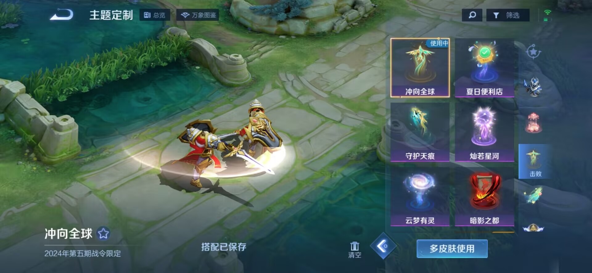 宫本武藏鬼剑武藏,兰陵王暗隐猎兽者,刘邦德古拉伯爵,貂蝉圣诞恋歌,阿轲节奏热浪,花木兰水晶猎龙者,白起星夜王子,百里玄策原初追逐者,不知火舞魅语,吕布圣诞狂欢,吕布末日机甲,露娜紫霞仙子,蔡文姬舞动绿茵,王昭君偶像歌手,刘禅绅士熊喵