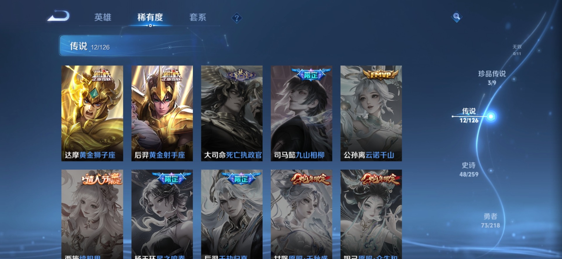 达摩黄金狮子座,王昭君乞巧织情,镜炽阳神光,孙悟空零号·赤焰,马超琥珀纪元,澜逐花归海,虞姬云霓雀翎