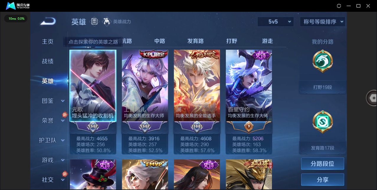- [10001055]贵族V4 荣耀典藏1 传说皮肤1 史诗皮肤23 皮肤数量134 皮肤价值:98908 英雄122 最强王者