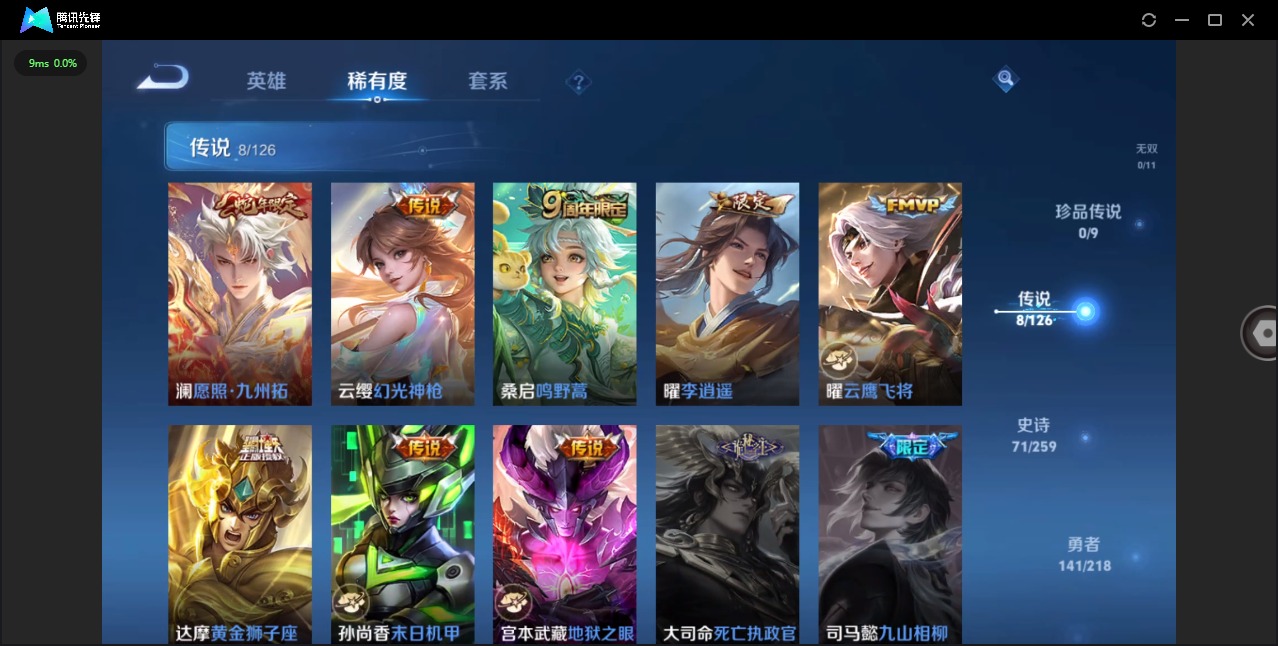 - [11881254]V7 1典藏 5传说 124英雄 252皮肤 可修改实名 荣耀水晶:最初的交响(伽罗典藏) 传说皮:地狱火,仲夏夜之梦(大飞蛾),云霓雀翎 珍宝阁皮:优雅恋人,蔷薇恋人 限定皮:白虎志(电光耗子),时雨天司(水龙头),遇见飞天,五谷丰年,青龙志(铠年限),冰锋战神,梁祝,逐梦之星,天狼溯光者,李小龙,逐梦之影,一生所爱,大圣娶亲,冰霜恋舞曲,乒乒小将 史诗皮:茶境仙,蔬乡物语(鲁班七号),紫霞仙子,苍穹之光,电玩小子(小书包),特工魅影,千年之狐,江河有灵,偶像歌手,电玩·爆裂旋风,猫狗日记-孙策,乱世虎臣,节奏热浪,女仆咖啡,摇滚巨星,水果甜心,天才门将,星夜王子,心灵骇客,功夫厨神,暗隐猎兽者,鬼剑武藏,心灵战警,舞动绿茵,纤云弄巧,繁星吟游(呼啦呼啦),拒霜思,乘风破浪,逐浪之夏,月团寄思,水晶猎龙者,金属风暴,圣诞狂欢,圣诞恋歌,鹰眼统帅,魅力维加斯,无心,未来纪元-赵云