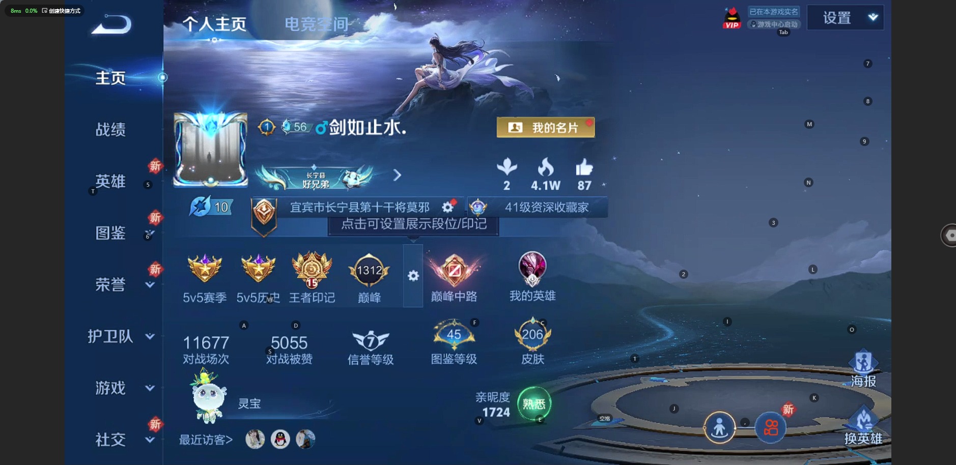 - PX_2089949-实名: 可修改 贵族等级: V6 英雄数: 122 皮肤数: 238 星传说: 星际治安官 传说皮: 胖达荣荣,超时空战士-狄仁杰 限定皮: 李小龙,岱宗,飞衡,高山流水,五谷丰年,山海·玄木吟,鸣野蒿,逐霄战戟,愿照·九州拓