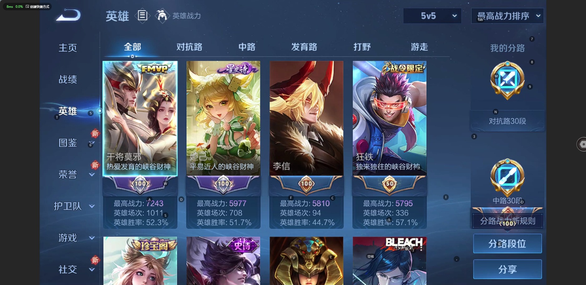 - [12296011]V8 2典藏 1无双 1珍品传说 16传说 125英雄 244皮肤 可修改实名 优质装备:九霄神辉(木兰典藏),弑枪猎影(韩信典藏),器灵·螭龙剑,酷洛米之心,炽阳神光,仲夏夜之梦(大飞蛾),飞鸢探春,乞巧织情,淬星耀世,花朝如约(花篮子),无双飞将,记忆之芯(机甲兔) 传说皮:幻光神枪 珍宝阁皮:妄想食味 限定皮:愿照·九州拓(澜年限),愿照·千秋盛(女娲年限),逐霄战戟,陌上桑,鸣野蒿,至尊宝,傲雪梅枪,绯月行,白晶晶,山海·碧波行(瑶年限),祈雪灵祝(雪兔子),李小龙,奇迹圣诞,神奇女侠,深海之息(深海大菠萝),神器·万象笔 史诗皮:鸭鸭历险记-刘禅,器灵·浮梦炉,化蝶舞,星界战将,谪仙醉月,龙之律动,百相守梦-周瑜,茶境仙,撼地雄心,破空之剑,战舞者,蒙犽顽岩魄,百相守梦-百里守约,百相守梦-黄忠,遇见神鹿,紫霞仙子,黄金分割率,特工魅影,千年之狐,江河有灵,魅语,无限星赏官,冰冠公主,晚萤,暗夜猫娘,末日机甲-吕布,猫狗日记-孙策,女仆咖啡,摇滚巨星,水果甜心,星夜王子,心灵骇客,功夫厨神,暗隐猎兽者,鬼剑武藏,心灵战警,天秀·启明,舞动绿茵,缤纷独角兽,乘风破浪,逐浪之夏,水晶猎龙者,唤灵魅影,圣诞狂欢,圣诞恋歌,鹰眼统帅,魅力维加斯,雪上飞焰,赏金猎手,无心