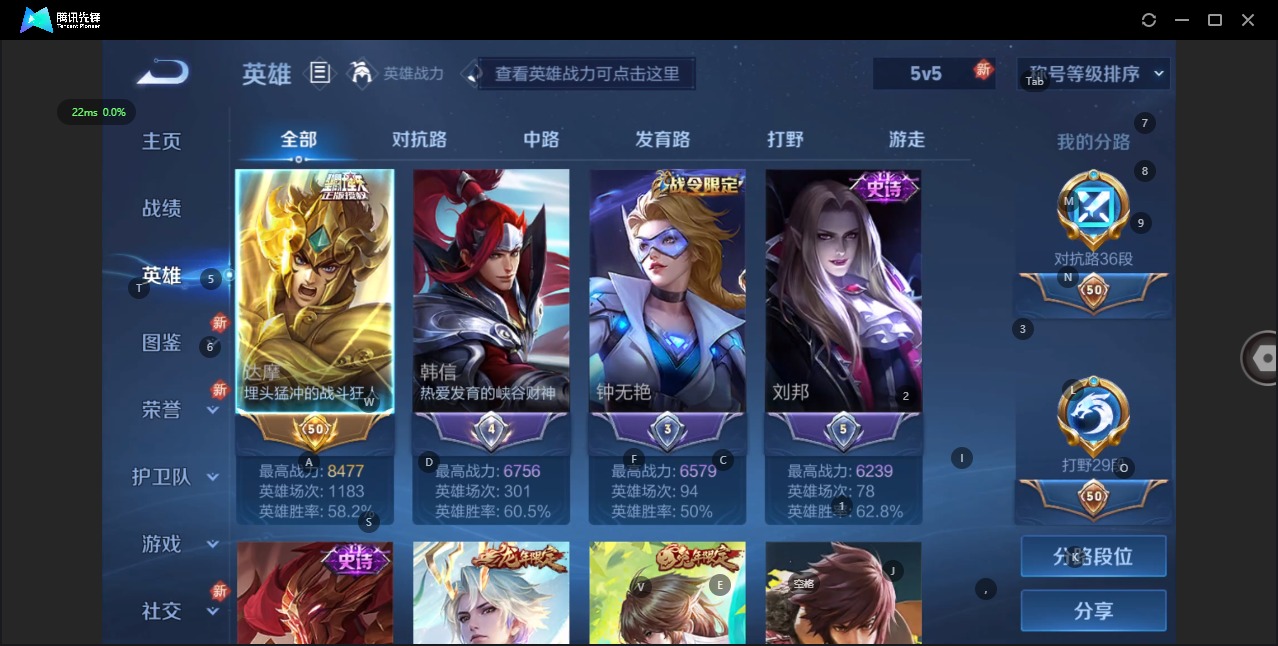 - PX_2102270-贵族等级: V4 英雄数: 60 皮肤数: 43 传说皮: 记忆之芯 限定皮: 鸣野蒿