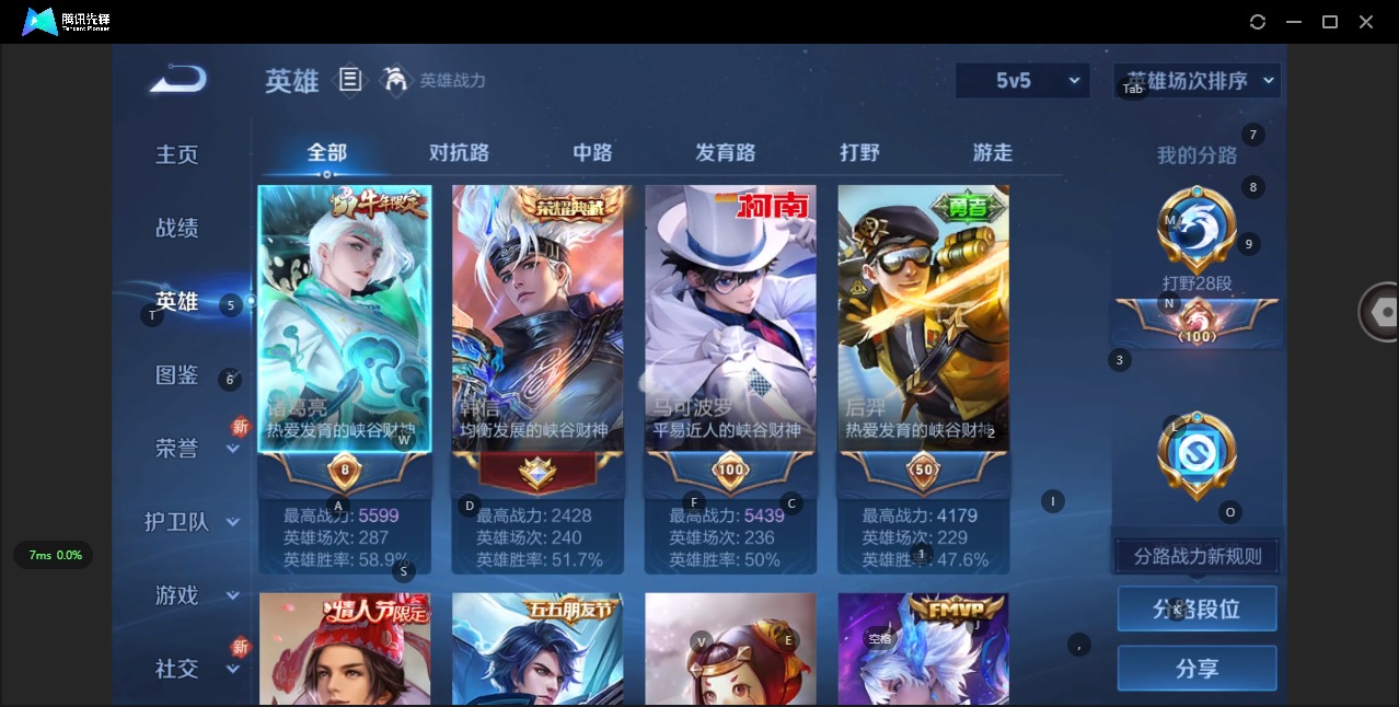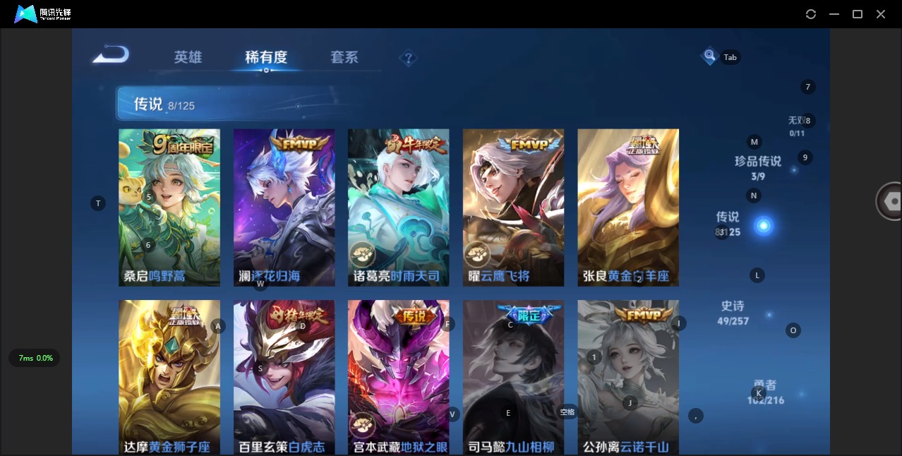 [11253021]V7 1典藏 3珍品传说 8传说 123英雄 203皮肤 可修改实名 荣耀水晶:弑枪猎影(韩信典藏) 珍品传说:怪盗基德,时之奇旅-孙策,兔狲·蓬尾 传说皮:黄金狮子座,黄金白羊座,地狱之眼,云鹰飞将(小将军),澜逐花归海 珍宝阁皮:女武神 限定皮:逐霄战戟,鸣野蒿,白虎志(电光耗子),时雨天司(水龙头),五谷丰年,逐梦之星,李小龙,大圣娶亲,青春决赛季 史诗皮:茶境仙,器灵·浮梦炉,鸭鸭历险记-刘禅,龙之律动,百相守梦-百里守约,化蝶舞,破空之剑,遇见神鹿,紫霞仙子,黄金分割率,偶像歌手,无限星赏官,魅语,暗夜猫娘,末日机甲-吕布,猫狗日记-孙策,节奏热浪,水果甜心,功夫厨神,德古拉伯爵,暗隐猎兽者,幽灵船长,鬼剑武藏,心灵战警,乐园奇幻夜,天秀·启明,地狱岩魂,诗语江南,拒霜思,缤纷独角兽,乘风破浪,水晶猎龙者,曙光守护者,箭羽风息,圣诞恋歌,鹰眼统帅,魅力维加斯,无心,未来纪元-赵云