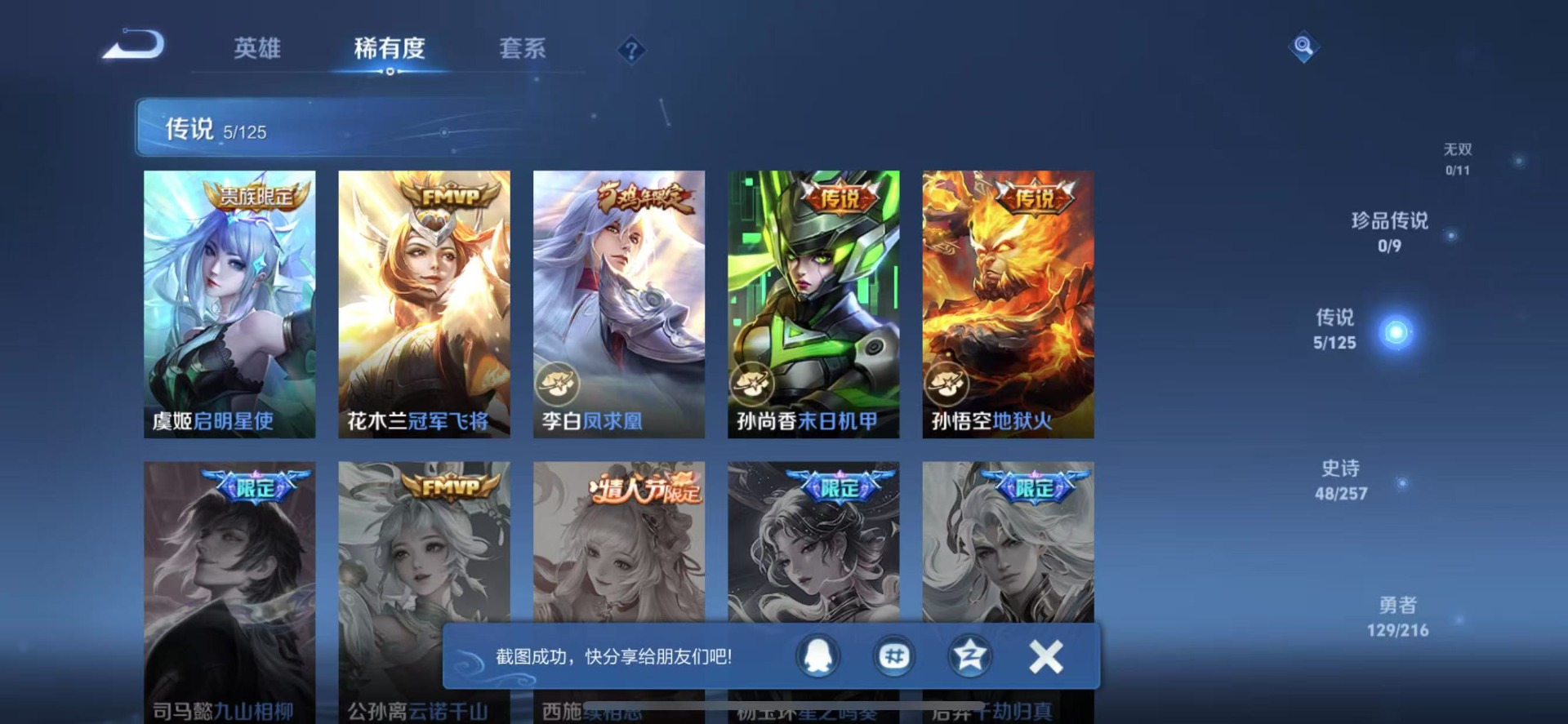 [11231222]V8 3典藏 5传说 124英雄 248皮肤 可修改实名 荣耀水晶:鸣剑·曳影,九霄神辉(木兰典藏),全息碎影(猴子典藏) 传说皮:地狱火,末日机甲-孙尚香(绿蚂蚱),冠军飞将 珍宝阁皮:妄想食味,玩趣恶龙 限定皮:逐霄战戟,至尊宝,凤求凰(白切鸡),飞衡(韩信年限),高山流水,五谷丰年,冰锋战神,梁祝,逐梦之星,李小龙 史诗皮:鸭鸭历险记-刘禅,战舞者,白龙吟,黄金分割率,特工魅影,千年之狐,高渐离燃音魔法,百解令(蒙犽),偶像歌手,末日机甲-吕布,猫狗日记-孙策,乱世虎臣,女仆咖啡,摇滚巨星,水果甜心,心灵骇客,功夫厨神,德古拉伯爵,暗隐猎兽者,幽灵船长,地狱岩魂,拒霜思,缤纷独角兽,乘风破浪,逐浪之夏,水晶猎龙者,曙光守护者,原初追逐者,圣诞狂欢,圣诞恋歌,鹰眼统帅,魅力维加斯,无心,未来纪元-赵云