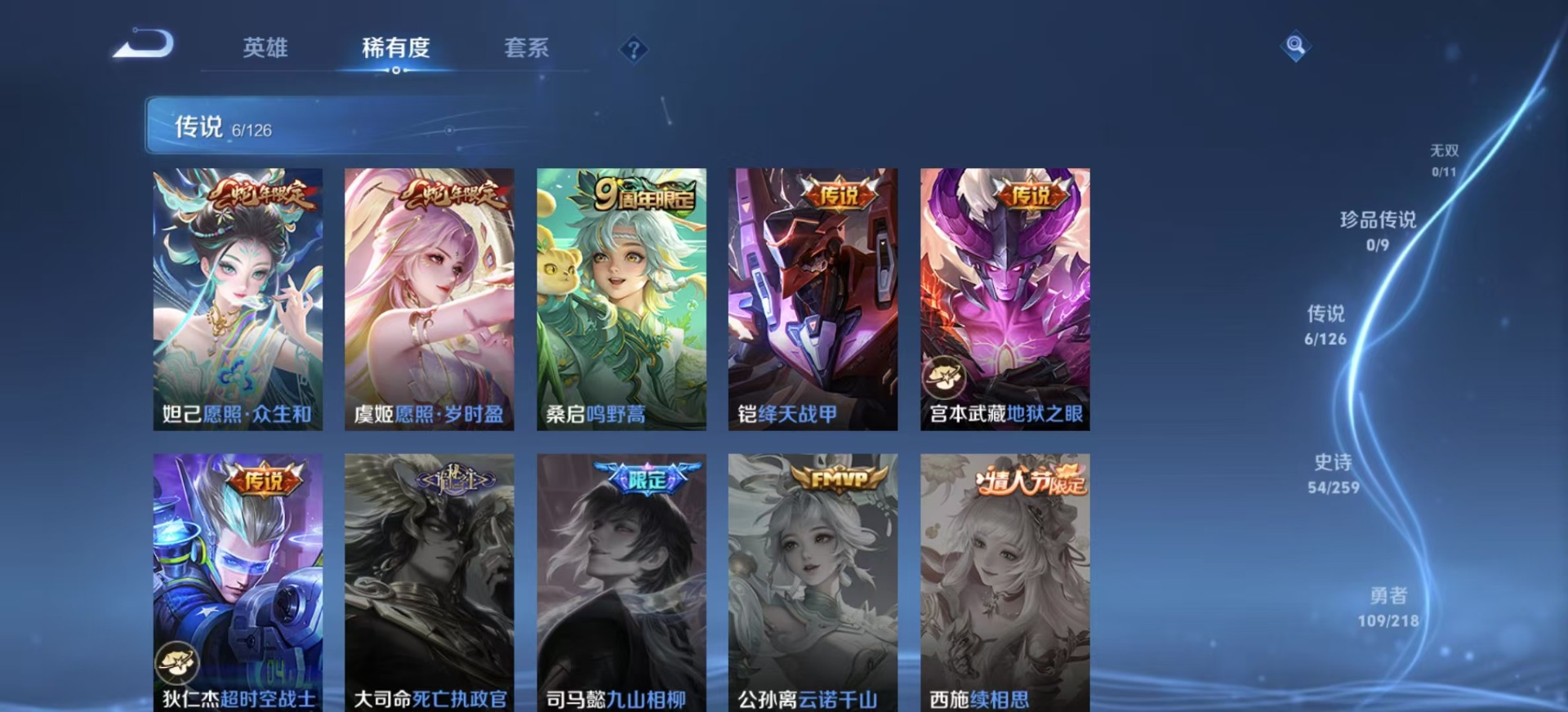 裴擒虎李小龙,桑启鸣野蒿,孙悟空至尊宝,妲己愿照·众生和,虞姬愿照·岁时盈