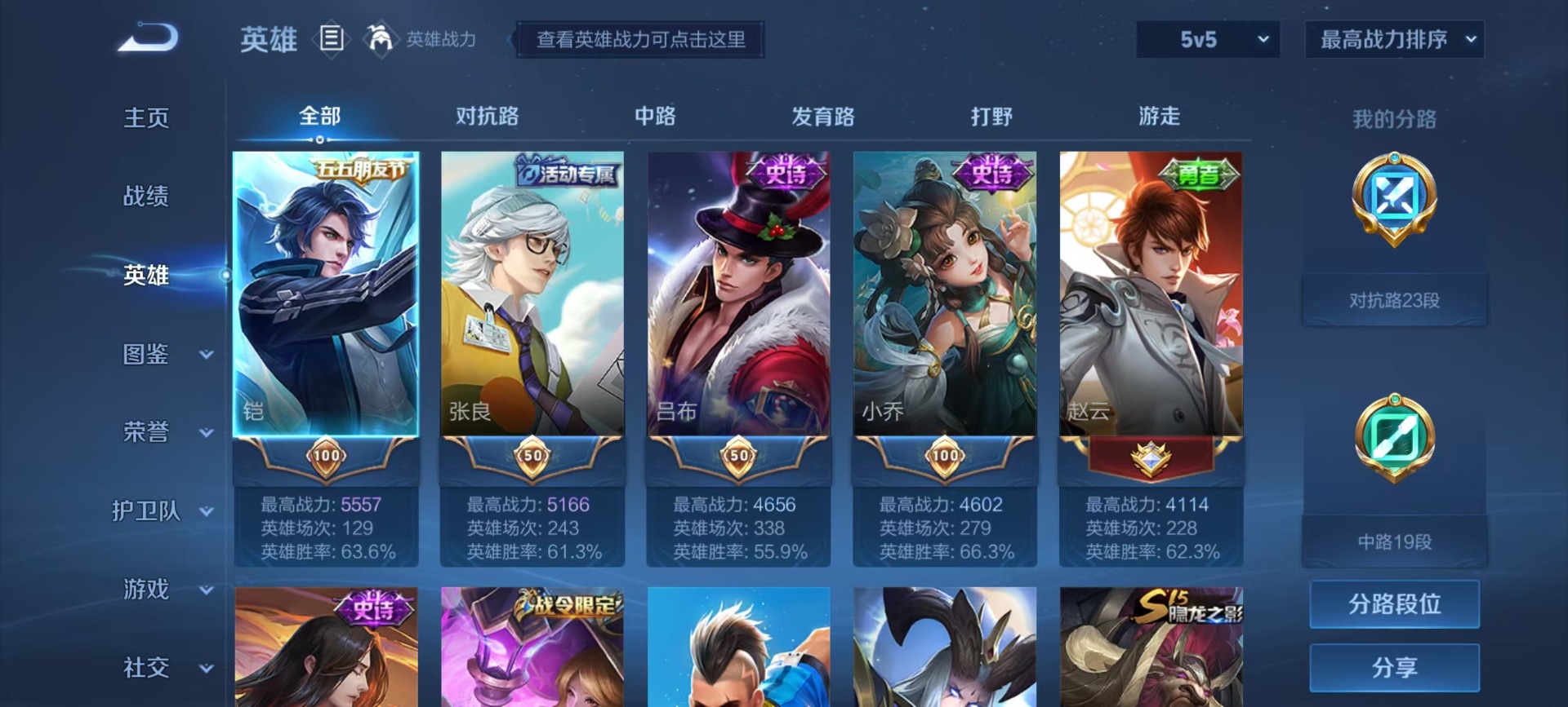 [11232624]V5 2传说 123英雄 215皮肤 可修改实名 传说皮:无双飞将 珍宝阁皮:妄想食味,蔷薇恋人,玩趣恶龙 限定皮:鸣野蒿,飞衡(韩信年限),高山流水,五谷丰年,梁祝,李小龙,猪悟能,大圣娶亲 史诗皮:石田雨龙,紫霞仙子,苍穹之光,电玩小子(小书包),黄金分割率,特工魅影,千年之狐,蒙恬荣光圣徽,青蛇,无限星赏官,暗夜猫娘,猫狗日记-孙策,猫狗日记-大乔,乱世虎臣,修罗,女仆咖啡,水果甜心,绅士熊喵,心灵骇客,功夫厨神,暗隐猎兽者,幽灵船长,鬼剑武藏,心灵战警,地狱岩魂,纤云弄巧,缤纷独角兽,乘风破浪,逐浪之夏,水晶猎龙者,曙光守护者,箭羽风息,金属风暴,原初追逐者,圣诞狂欢,圣诞恋歌,鹰眼统帅,魅力维加斯,黎明之约,无心,未来纪元-赵云