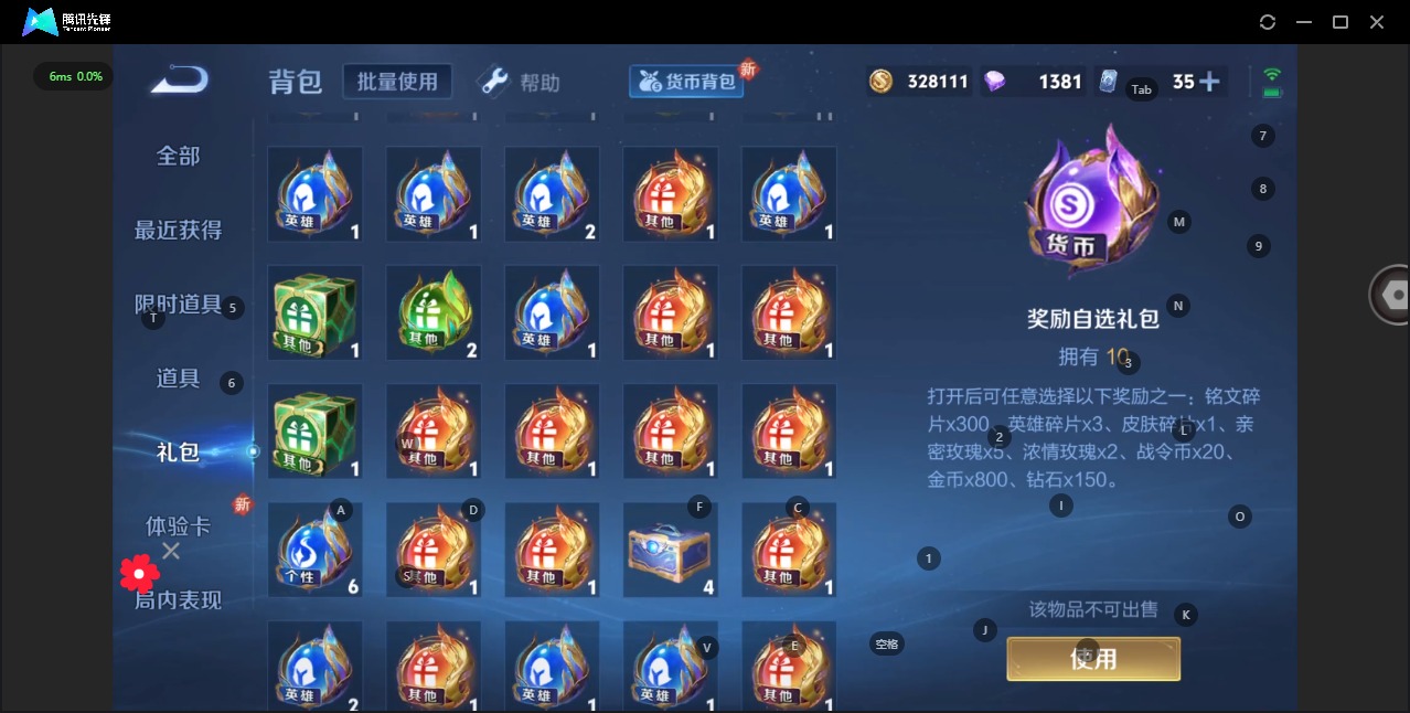 - [11529779]V6 1典藏 1传说 124英雄 189皮肤 可修改实名 优质装备:赤影疾锋,猫影幻舞 珍宝阁皮:优雅恋人,蔷薇恋人 限定皮:至尊宝,遇见飞天,五谷丰年,梁祝,御风骁将(吕布年限),李小龙,逐梦之影,猪悟能,大圣娶亲,美猴王 史诗皮:电玩小子(小书包),特工魅影,千年之狐,江河有灵,冰冠公主,电玩·爆裂旋风,龙骑士(小龙虾),水果甜心,德古拉伯爵,暗隐猎兽者,鬼剑武藏,舞动绿茵,纤云弄巧,繁星吟游(呼啦呼啦),缤纷独角兽,乘风破浪,水晶猎龙者,金属风暴,圣诞恋歌,鹰眼统帅,魅力维加斯,无心