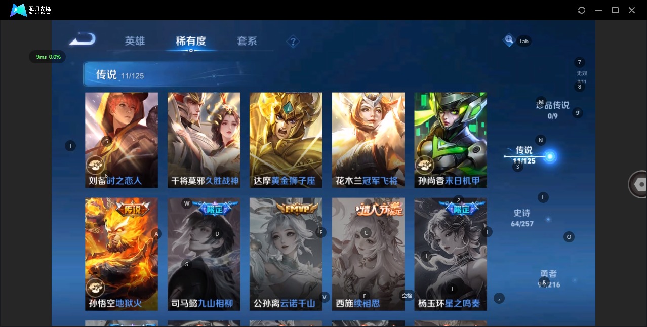 [11227508]V8 11传说 121英雄 237皮肤 可修改实名 传说皮:幻光神枪,李逍遥,黄金狮子座,地狱火,末日机甲-孙尚香(绿蚂蚱),冠军飞将,久胜战神,炽阳神光,无双飞将,时之恋人-刘备(电焊工) 珍宝阁皮:妄想食味,蔷薇恋人 限定皮:至尊宝,凤凰于飞,寅虎·展翼(孙膑年限),遇见飞天,高山流水,五谷丰年,游园惊梦,梁祝,御风骁将(吕布年限),烈魂,李小龙,朱雀志(守约年限),霸王别姬-虞姬,引擎之心 史诗皮:琥珀纪元伽罗,遇见神鹿,紫霞仙子,白龙吟,蒙恬荣光圣徽,冰冠公主,偶像歌手,晚萤,无限星赏官,魅语,龙骑士(小龙虾),乱世虎臣,节奏热浪,修罗,女仆咖啡,水果甜心,天才门将,心灵骇客,功夫厨神,暗隐猎兽者,幽灵船长,鬼剑武藏,舞动绿茵,纤云弄巧,繁星吟游(呼啦呼啦),缤纷独角兽,乘风破浪,水晶猎龙者,曙光守护者,金属风暴,原初追逐者,圣诞狂欢,鹰眼统帅,黎明之约,赏金猎手