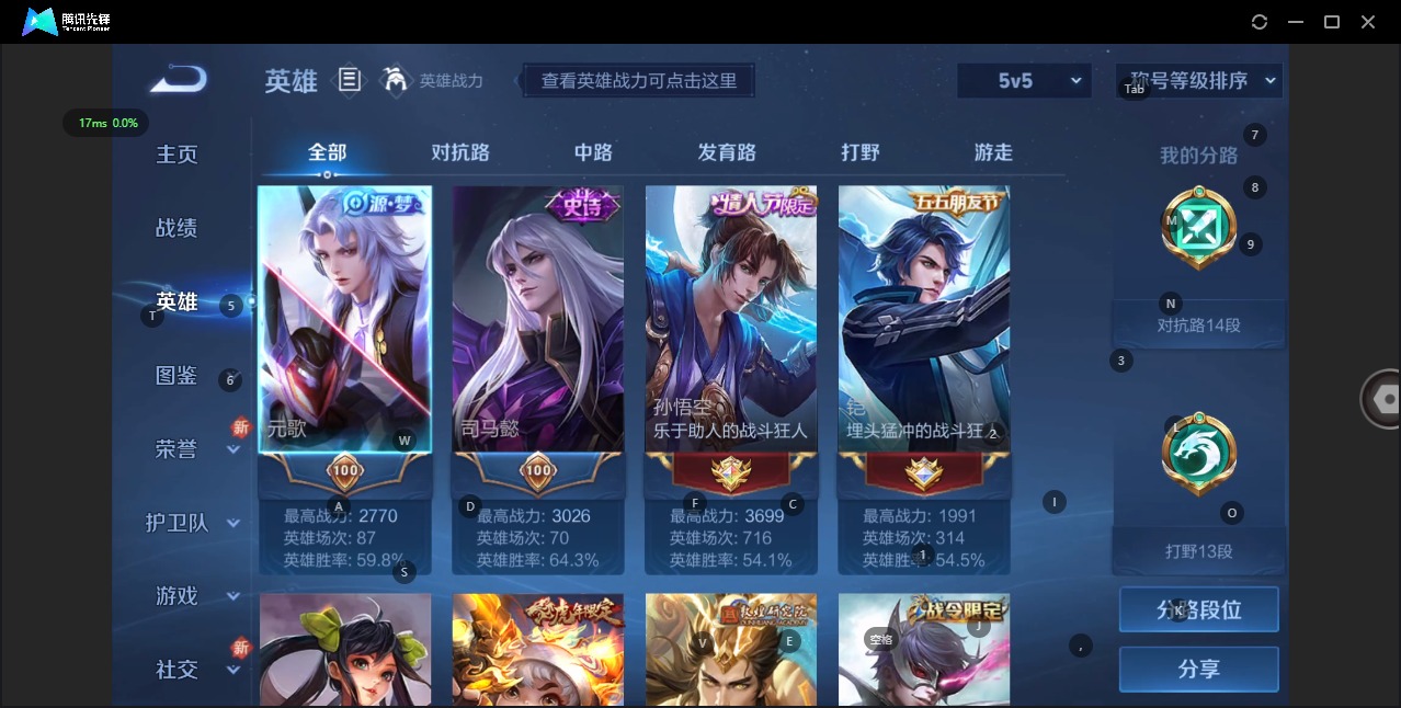 [11227577]V7 7传说 122英雄 215皮肤 可修改实名 传说皮:黄金狮子座,地狱火,无双飞将,遇见神鼓 珍宝阁皮:妄想食味,胡桃夹子 限定皮:鸣野蒿,至尊宝,傲雪梅枪,五谷丰年,武圣,梁祝,天狼征服者,李小龙,寅虎·瑞焰(虎皮蛋子) 史诗皮:茶境仙,蔬乡物语(鲁班七号),超元猎域,乘龙·忆丹青(大乔年限),化蝶舞,破空之剑,遇见神鹿,紫霞仙子,电玩小子(小书包),黄金分割率,特工魅影,千年之狐,江河有灵,百解令(蒙犽),蒙恬荣光圣徽,青蛇,电玩·爆裂旋风,猫狗日记-孙策,乱世虎臣,节奏热浪,修罗,女仆咖啡,摇滚巨星,水果甜心,天才门将,星夜王子,心灵骇客,功夫厨神,德古拉伯爵,暗隐猎兽者,鬼剑武藏,暗渊魔法,心灵战警,乐园奇幻夜,舞动绿茵,地狱岩魂,纤云弄巧,缤纷独角兽,乘风破浪,逐浪之夏,水晶猎龙者,曙光守护者,箭羽风息,金属风暴,圣诞狂欢,圣诞恋歌,鹰眼统帅,魅力维加斯,无心,未来纪元-赵云