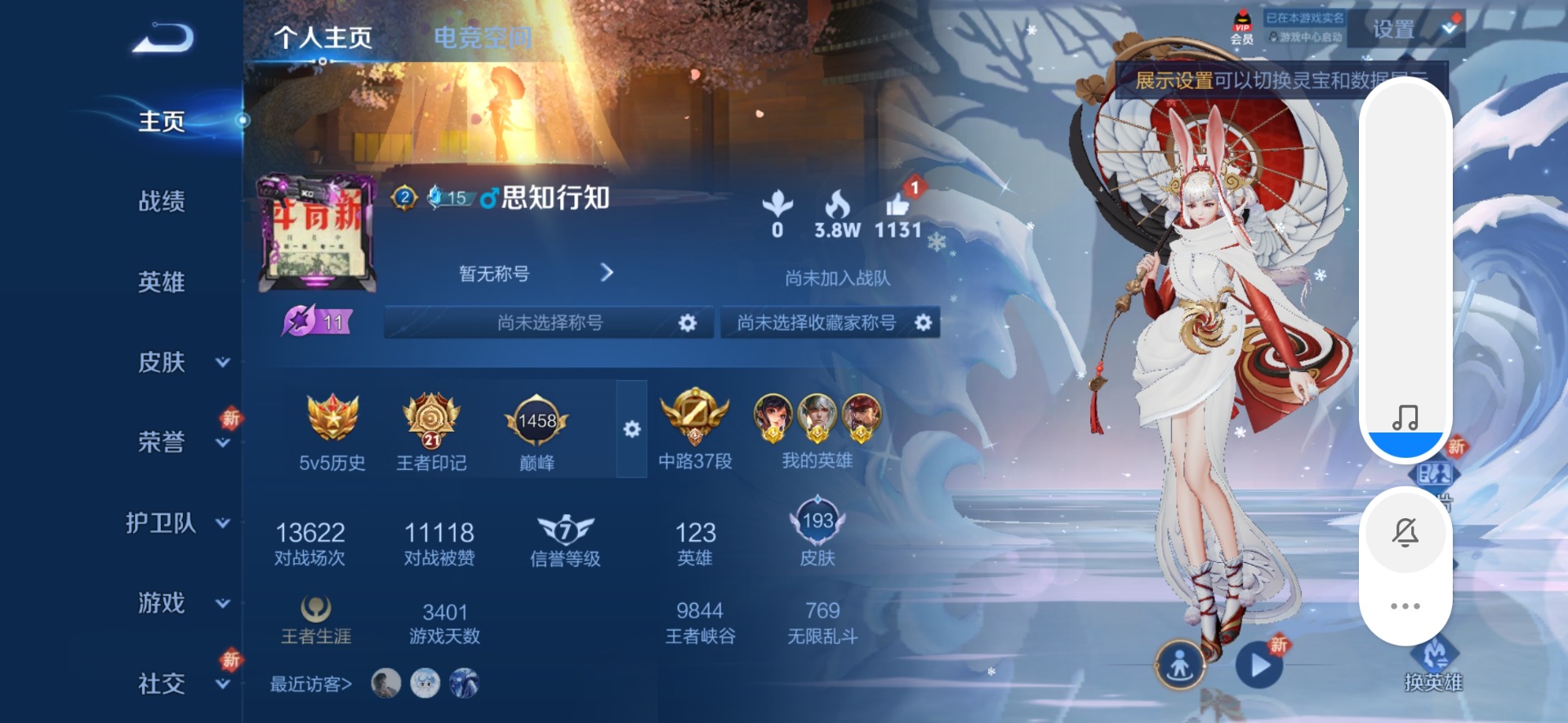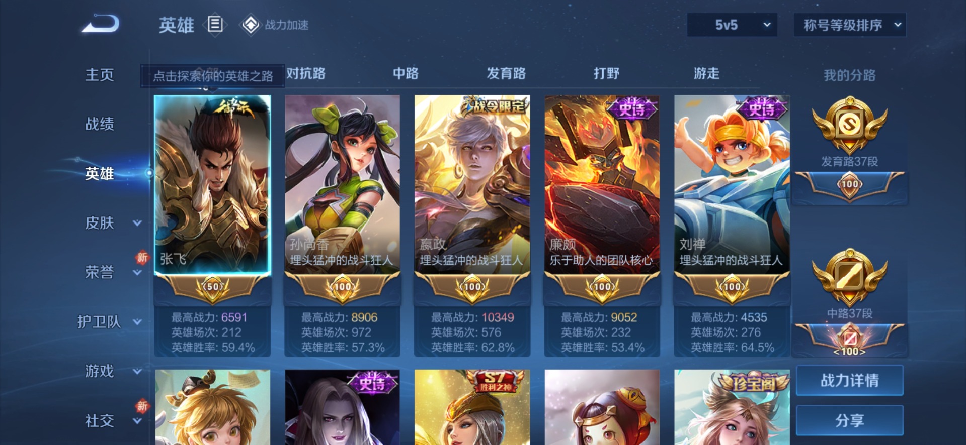 - PX_2095046-贵族等级: V3 英雄数: 98 皮肤数: 104 传说皮: 花朝如约 限定皮: 游园惊梦,鸣野蒿,逐霄战戟