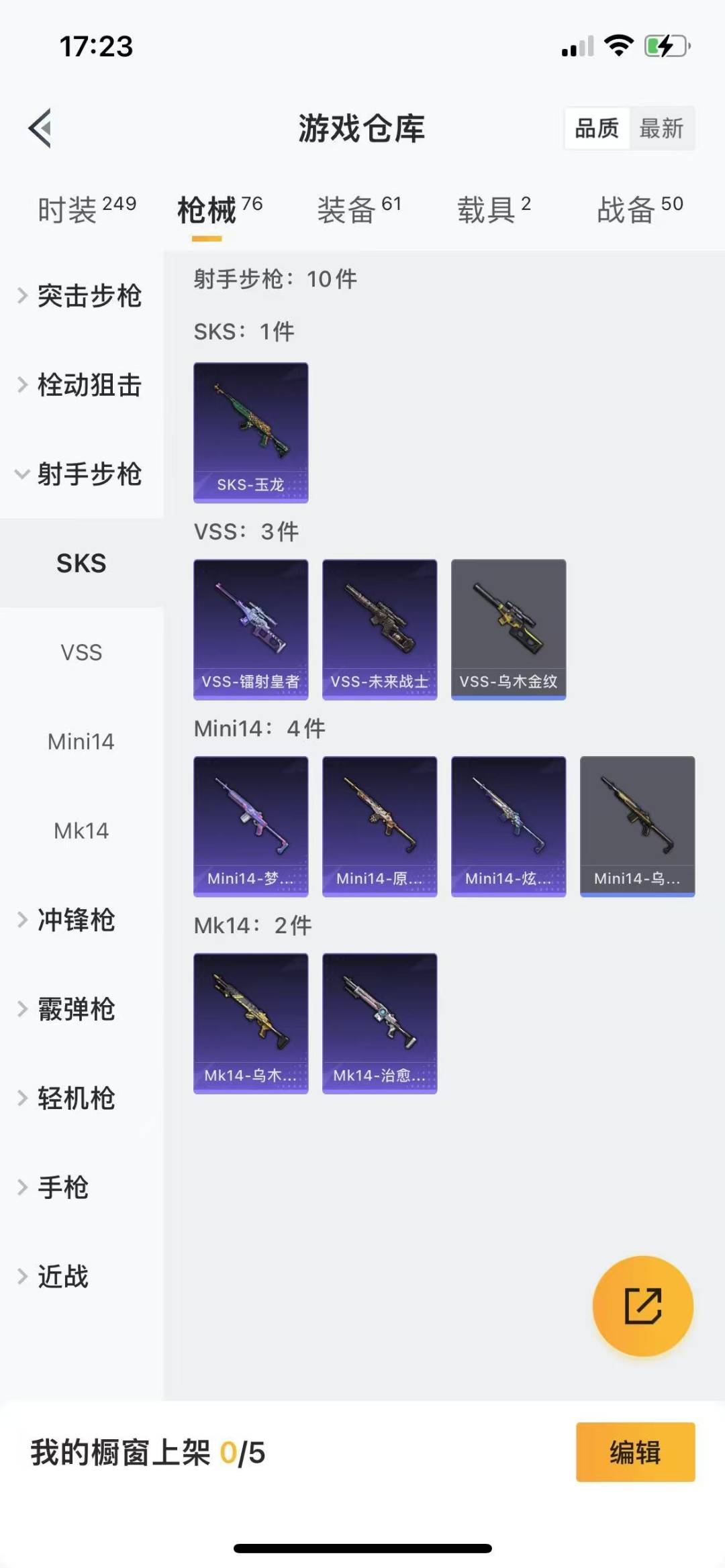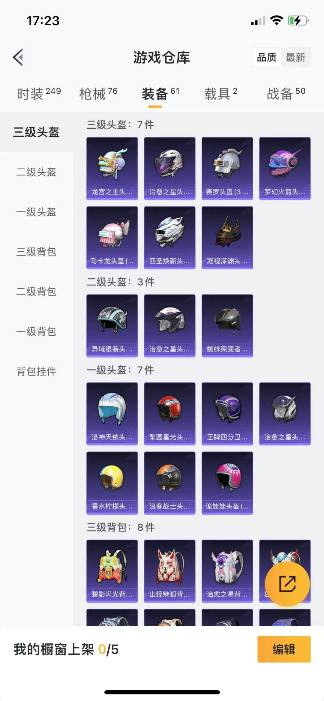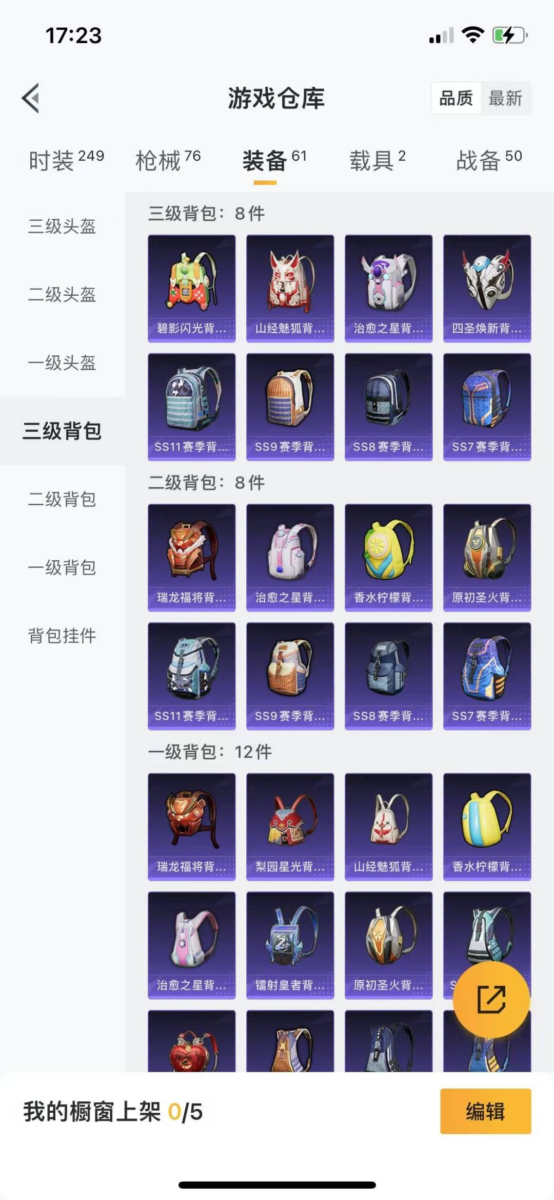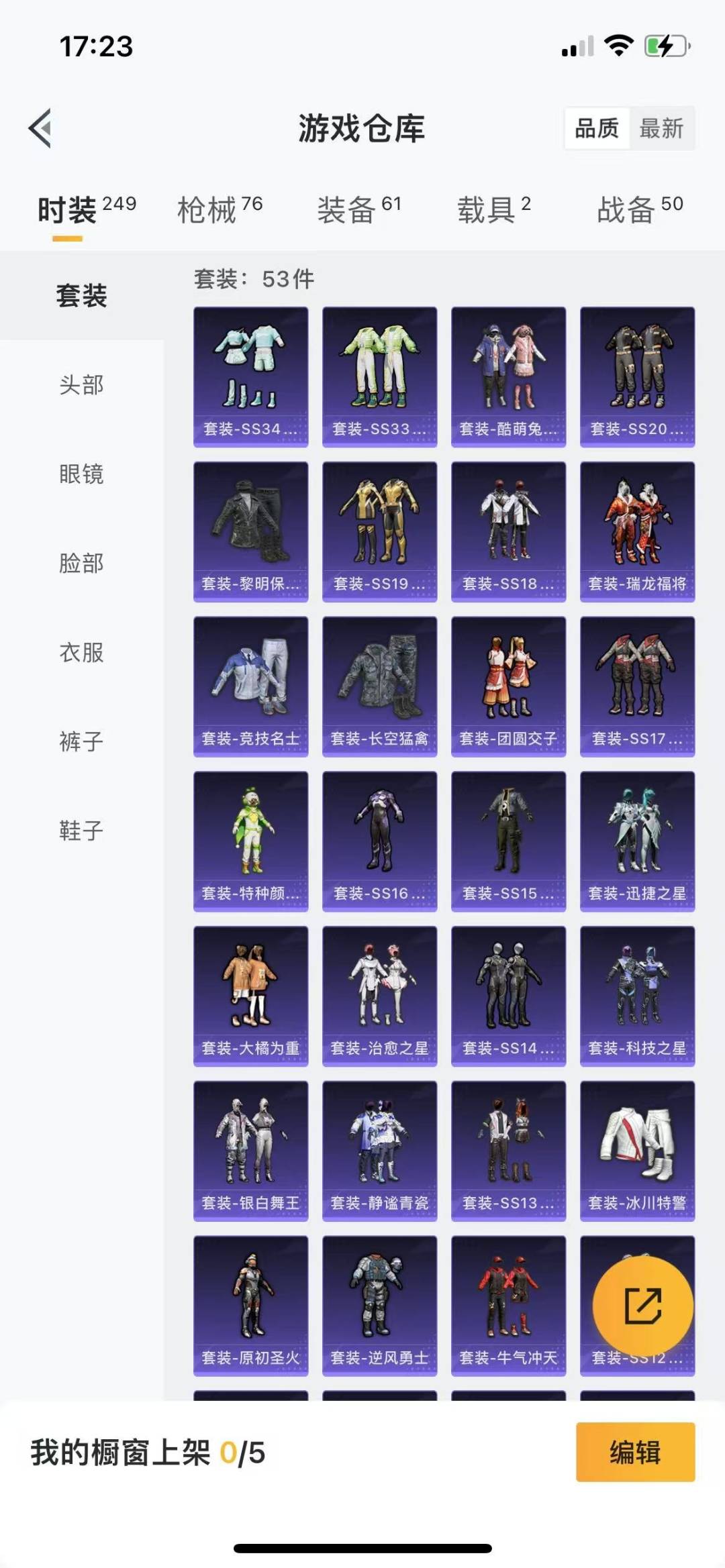 - [11646239]3粉装 5特效枪 4印记 可二次 可修改实名 优质装备:GROZA-镜光银凌,AUG-暖羊咩咩,星穹咏叹调,MK14-甜梦熊击,羊梦糖心,Kar98K-巳巳如意 热门装扮:第五大道,星兔领航员 稀有枪皮:DP-28-豹影疾电 五级特效枪:五级GROZA-镜光银凌,五级Kar98K-巳巳如意,五级DP-28-豹影疾电,五级MK14-甜梦熊击,五级AUG-暖羊咩咩 紫色装扮:田园牧歌,轻风白浪,SS22特训,莱茵河畔,SS23特训,幻彩翩翩,灵蜜圈圈,妙红点点,娇憨猪猪,暖心橘喵,萌趣咩咩,SS21特训,绚烂繁星,SS31特训套装,冰川特警,云朵鹅,雪绒豹,SS33特训套装,SS20特训,飞驰魅影,音速流光,SS19特训,军刀雅典娜,豚鼠丹丹,甜心亚梦,虚音幻奏,水晶王族,酒红色名流,野性战心,长空猛禽,蓝色运动,飞行日记,魅力单车,麻辣教官,黄色伏地魔,黄色名流,黄色运动,黑色伏地魔,龟仙人,冰河战士,龙魂突击队,蝶变,极地朋克,柠萌假日,沙漠兵团,涂山之恋,清新柠檬,夏日音浪,完美偶像,帅气教官,幻世战舞者,探宝勇士,湖蓝色名流,绮丽涂鸦,白色伏地魔,空岛之星,红色运动,王牌教练,牛气冲天,炫蓝之夏,牛气满满,猛禽,特殊使命,特训学院,猎鹰,雏菊兔兔,萝兰蝴蝶,SS29特训,SS28特训,铁血战翼,鱼渊荷华,玉兔迎春,燕燕于飞,巳巳如意,风玲,都市丽猫,林月如,竞技名士,神气柴柴,懵萌河马,SS24特训(SS24特训套装),菲菲,超人强,焰鹰斗篷,幻羽潜行,SS27特训,SS26特训,春光漫游,智谋强哥,星影赞美诗,小鸟芋圆,蓝冰羽,紫幽梦,SS32特训服(SS32特训套装),萌黄之夏,恋语绒绒,金耀舞者,光之冒险 优质战备:星途旅人降落伞,未来领航者降落伞,庄周梦蝶降落伞,炙焰牛王降落伞,恐龙拽拽降落伞,橘柚倾心降落伞,夜幕颂歌飞行器,幻星舰长飞行器,智趣喵喵飞行器,临安公主降落伞,桃粉嫣然降落伞,筑梦精灵降落伞,环太平洋降落伞,翩跹演武降落伞,暗夜鎏金降落伞,纯梦嫁纱降落伞,第五大道降落伞