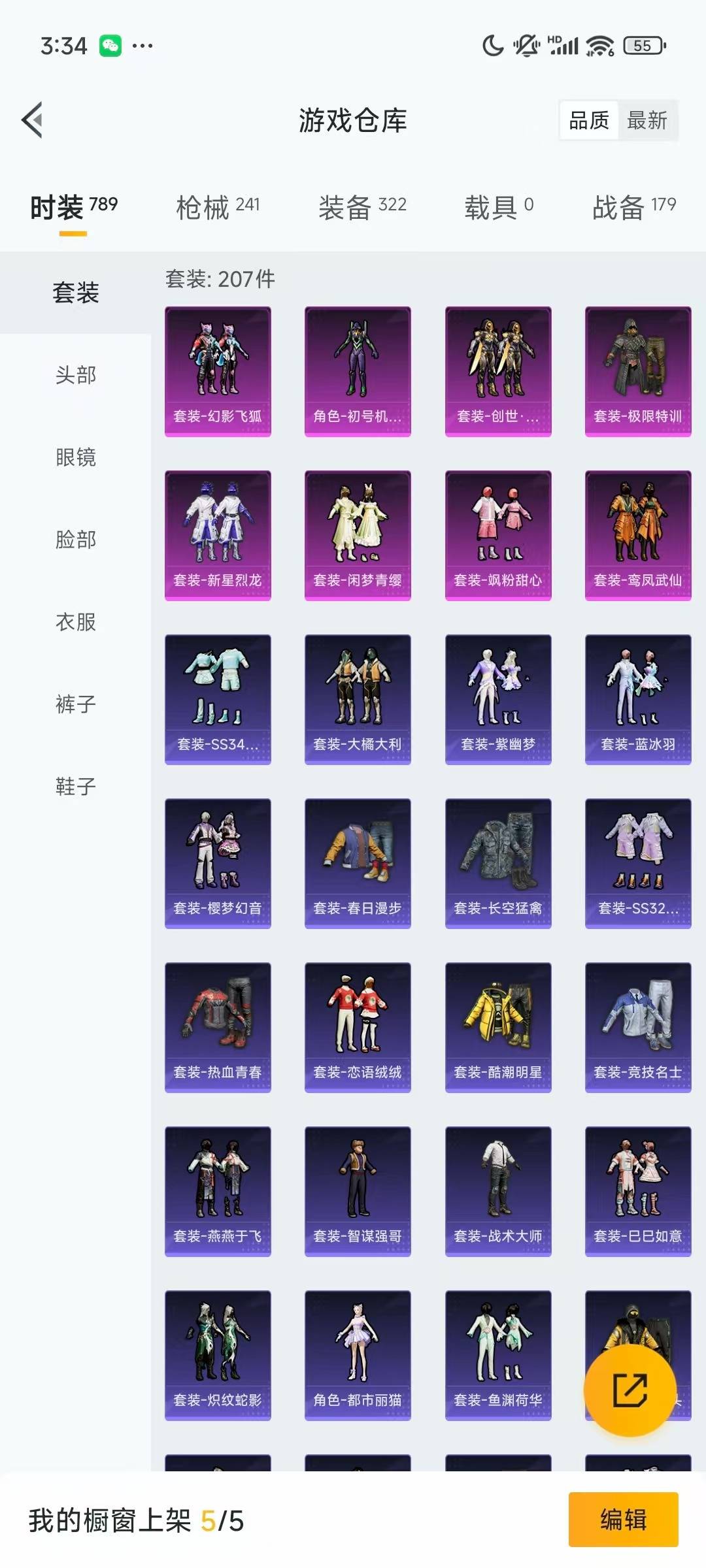 套装-极限特训,套装-奇异狩猎者,套装-迅捷狂鲨,套装-深海小丑鱼,套装-梦魇先生,套装-新星烈龙,角色-初号机款机体服,套装-鸾凤武仙,套装-飒粉甜心,套装-闲梦青缨,套装-创世·救赎,套装-幻影飞狐
