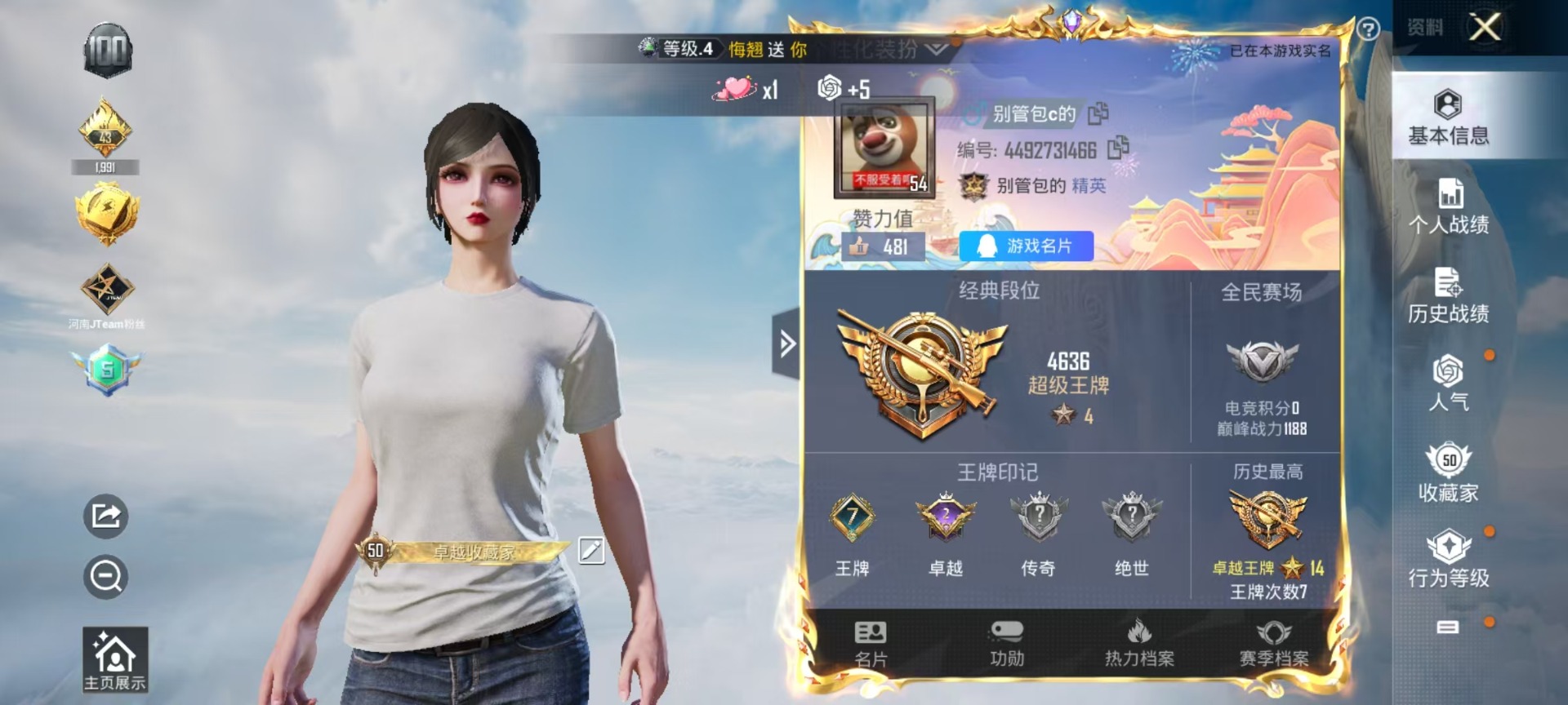 - PX_2079615- 安卓手Q-7王牌印记-2粉装-5特效枪-0载具-24906热力值-57套装-88枪皮-1卓越印记-0传奇印记 【2粉装】,星穹咏叹调,萨利娅 【5特效枪】GROZA-镜光银凌-5级 AUG-暖羊咩咩-5级 Kar98K-巳巳如意-5级 Mk14-甜梦熊击-5级 PKM-江南烟雨-6级 【1稀有紫装】,小丑鱼, 【57稀有时装】,SS31特训,SS33特训,SS32特训,蓝