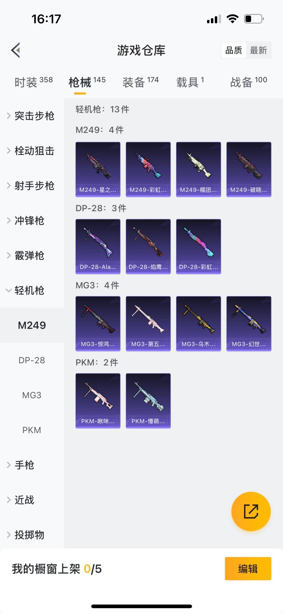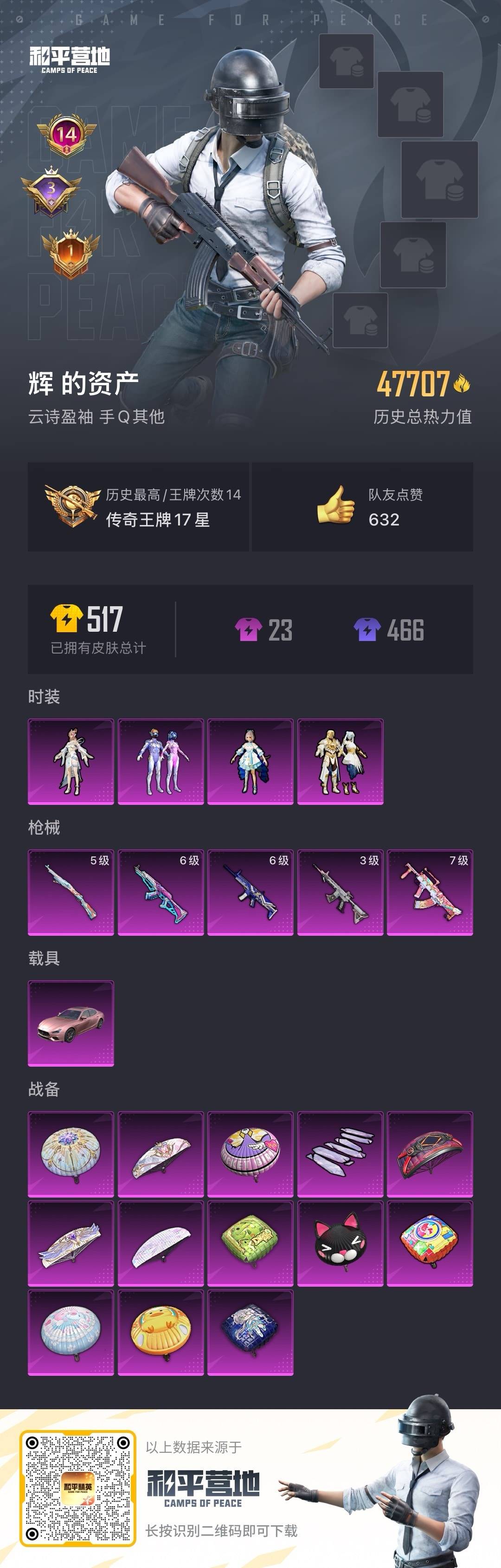- PX_2081180-时装数: 91 枪械数: 27 战备数: 23 稀有枪皮: MK14-甜梦熊击【5级】