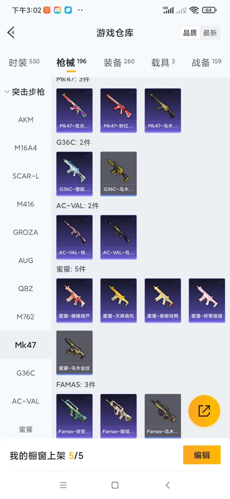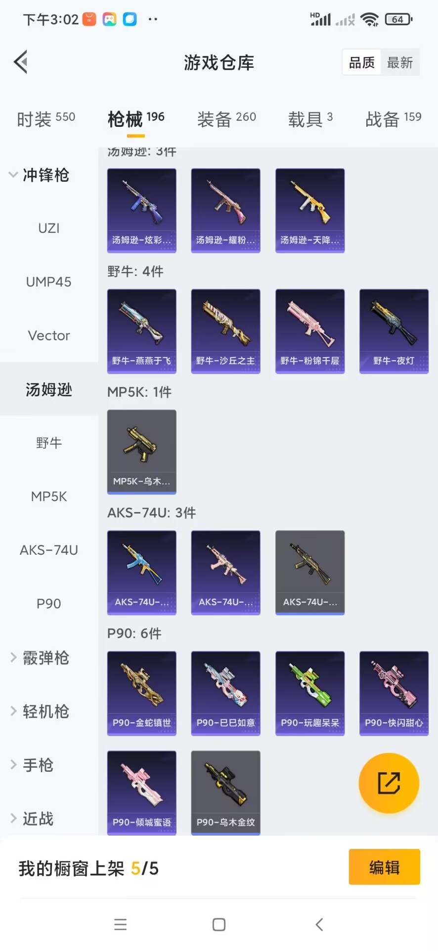 AKM-绿萝繁花,SCAR-L-锦绣绵绵,SCAR-L-金蛇镇世,M416-全功率超战,AUG-暖羊咩咩,Kar98K-圣域龙灵,Kar98K-巳巳如意,Vector-飒粉甜心