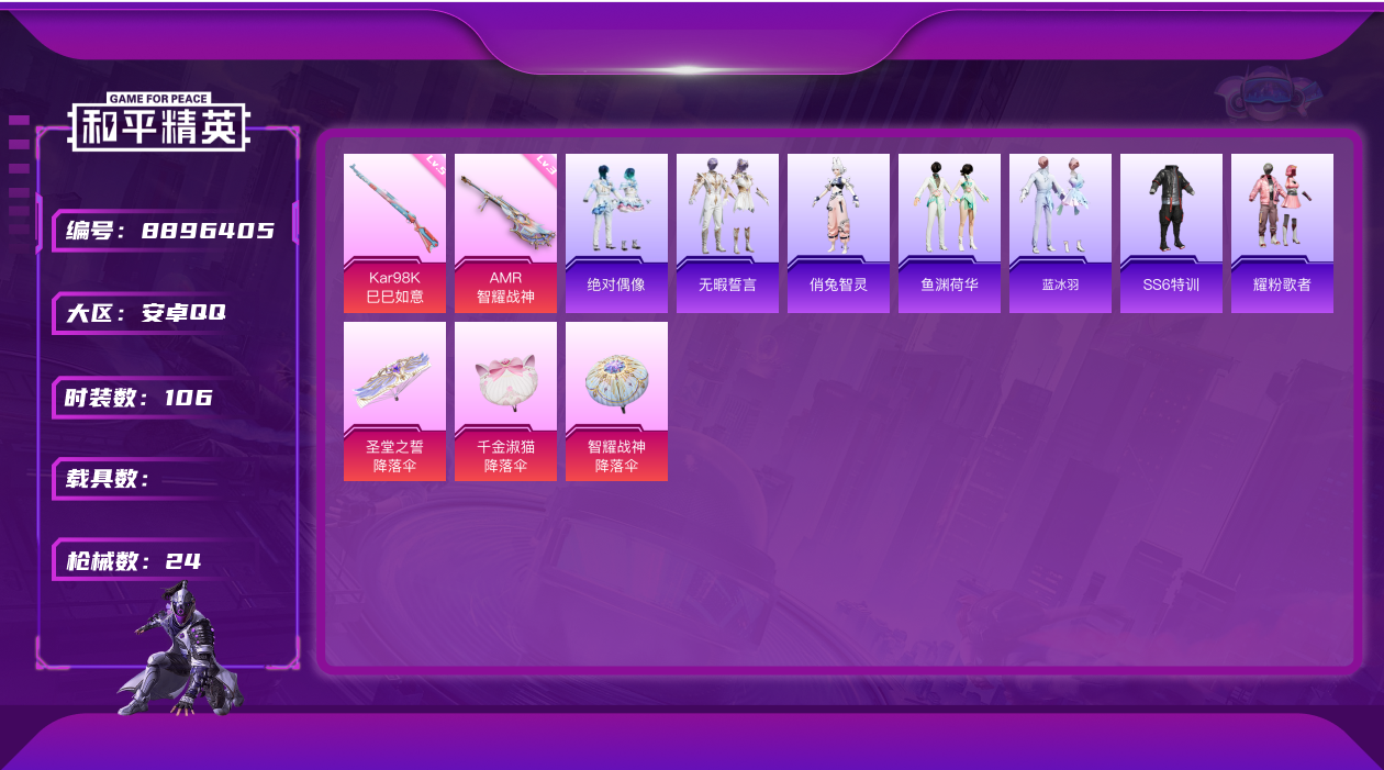 - PX_2054904-(可二次实名) 安卓Q-84175热力值 7王牌印记 历史传奇王牌10星 207套装 230枪皮(极品女号 32粉8特2载具 巧克力 奶龙 猪脸 冰川红玫 童趣迷兔 小叽联名 6号树人 纯白跃动 超新星M4) 【2载具】 宾利飞驰布罗德盖棕双色 萌兔起飞僚机 【1稀有】 浪漫天命 【32粉装】 圣堂之誓 严莉莉 小蓝 美琪 美雪 光极星 蜜语绒猫 憨憨奶龙 天使彩虹糖 甜心巧