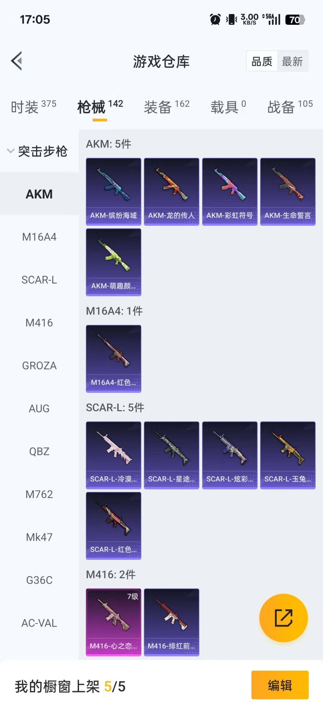 M416-心之恋语,GROZA-镜光银凌,AUG-暖羊咩咩,Kar98K-巳巳如意,Mk14-精灵梦叶罗丽