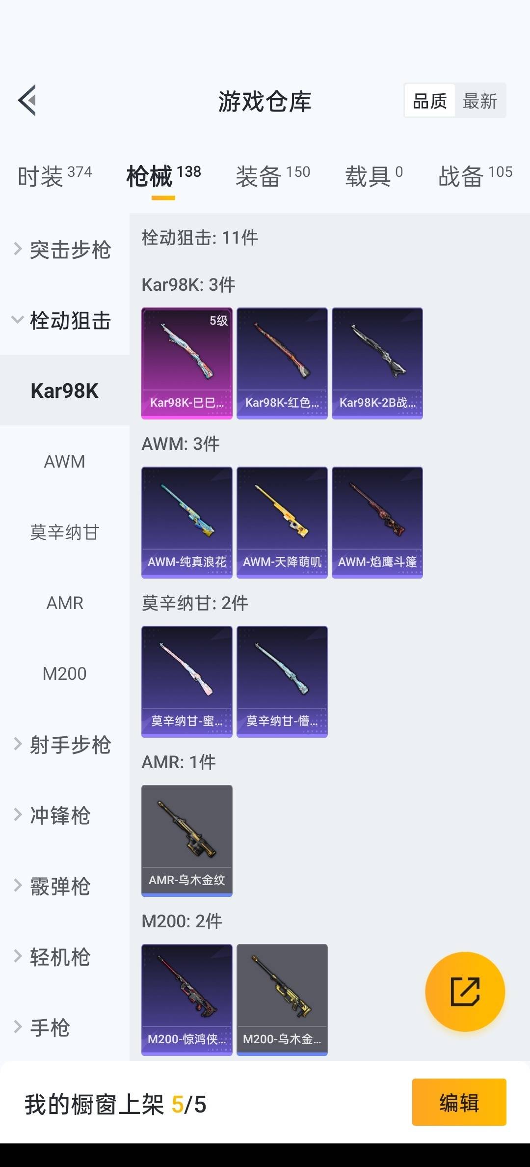 AKM-绿萝繁花,SCAR-L-锦绣绵绵,Kar98K-巳巳如意,UMP45-量子极限