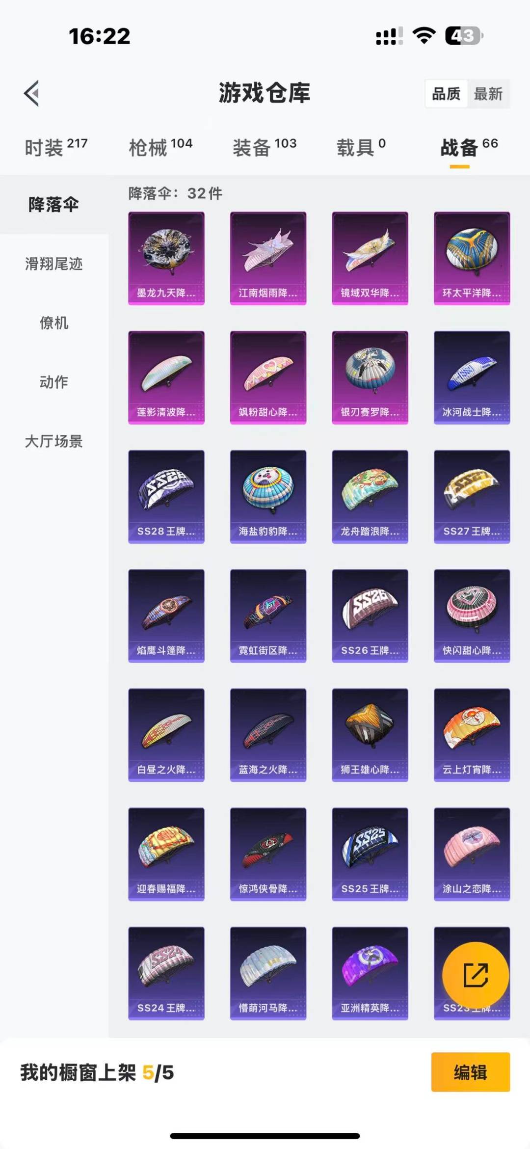 [11345253]1红装 3粉装 5特效枪 8印记 可二次 可修改实名 优质装备:二级墨龙九天-敖渊(2级敖渊2级野人),墨龙九天-敖渊(野人),MG3梦幻舞会,AKM绿萝繁花,SCAR-L-锦绣绵绵,七级MG3-梦幻舞会,M416电玩时刻,M416墨龙九天 热门装扮:第五大道,繁龙极客,烟云彩露 五级特效枪:五级M416-电玩时刻,五级SCAR-L-锦绣绵绵,五级AKM-绿萝繁花 三级特效枪:三级M416-墨龙九天 紫色装扮:SS22特训,莱茵河畔,SS23特训,娇憨猪猪,萌趣咩咩,SS21特训,SS33特训套装,青涩时光,灵公主,SS20特训,SS15特训,SS14特训,都市漫游者,长空猛禽,霓虹街区,蓝色守护者,蓝色运动,魅力单车,鹤鸣,麻辣教官,龙的传人,龟仙人,柠萌假日,海岛探路者,涂山之恋,幻世战舞者,白熊同盟,破蛋小黄鸡,空岛之星,SS28特训,玉兔迎春,竞技名士,情公主,惊鸿侠骨,神气柴柴,懵萌河马,SS24特训(SS24特训套装),SS25特训,锦衣飞扬,焰鹰斗篷,幻羽潜行,幽夜迷踪,SS27特训,无暇誓言,华灯初上,SS26特训,春光漫游,快闪甜心,绯格组合,萌黄之夏 优质战备:墨龙九天降落伞,龙翔九天飞行器,江南烟雨降落伞,莲影清波降落伞,镜域双华降落伞,镜域双华-灵镜之阶,环太平洋降落伞,飒粉甜心降落伞,银刃赛罗降落伞