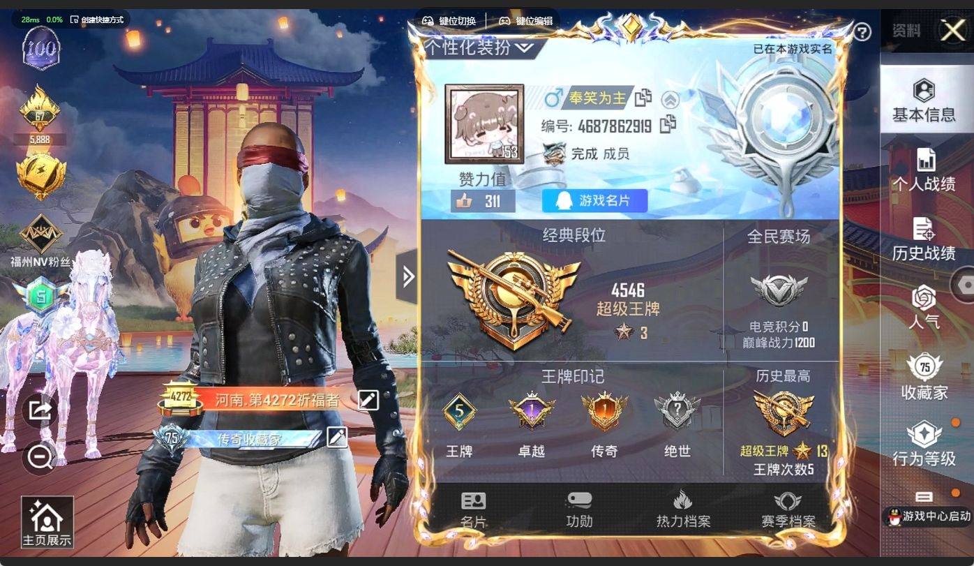 - [11647384]V9 4典藏 36传说 125英雄 453皮肤 可修改实名 优质装备:鸣剑·曳影,星域神启(倪克斯贼亮),幻阙歌(貂蝉典藏),弑枪猎影(韩信典藏),云鹰飞将(小将军),绛天战甲(鸡嘴战神),黄金白羊座,久胜战神,炽阳神光,一念神魔,末日机甲-孙尚香(绿蚂蚱),地狱火,仲夏夜之梦(大飞蛾),地狱之眼,飞鸢探春,胖达荣荣,时之恋人-刘备(电焊工),淬星耀世,超时空战士-狄仁杰,末日机甲-孙策,碎云,炽翼辉光(娃娃菜牛角包),电玩·雷克斯,妄想实况,黄金天蝎座,涂山容容 传说皮:云诺千山,幻光神枪 珍宝阁皮:妄想食味,万物之道,优雅恋人,玩趣恶龙 限定皮:愿照·山河定(司空震年限),愿照·众生和(妲己年限),逐霄战戟,鸣野蒿,至尊宝,白虎志(电光耗子),异界灵契(白毛香),傲雪梅枪,补天,前尘镜,绯月行,神威(电光马子),飞衡(韩信年限),遇见飞天,高山流水,诗剑行,五谷丰年,幽恒(沐浴露),游园惊梦,梁祝,御风骁将(吕布年限),龙胆,岱宗(典韦年限),李小龙,辉光之辰,霸王别姬-虞姬,默契交锋-花木兰,孙行者,一生所爱,神奇女侠,匿光追影者,寅虎·御盾(廉颇年限),寅虎·心曲(虎婆),寅虎·赤拳(老虎年限),百木心枪,玉兔公主,启示之音,唐三藏,枫霜尽,时之奇旅-妲己,神器·万象笔 史诗皮:鸭鸭历险记-刘禅,器灵·浮梦炉,狼魂孤将,化蝶舞,灵蛊蚀心,星界战将,谪仙醉月,龙之律动,雪豹·霜爪,石田雨龙,百相守梦-周瑜,茶境仙,破空之剑,东方月初,蔬乡物语(鲁班七号),百相守梦-百里守约,百相守梦-黄忠,紫霞仙子,苍穹之光,电玩小子(小书包),黄金分割率,特工魅影,千年之狐,永昼,江河有灵,末日机甲-莱西奥,鹤归松栖(赵怀真),雪夜绮愿(周瑜),百解令(蒙犽),高渐离燃音魔法,蒙恬荣光圣徽,无限星赏官,冰冠公主,青蛇,偶像歌手,白蛇,晚萤,电玩·爆裂旋风,暗夜猫娘,百相守梦(关羽),龙骑士(小龙虾),末日机甲-吕布,猫狗日记-孙策,猫狗日记-大乔,时之恋人-孙尚香,乱世虎臣,节奏热浪,修罗,女仆咖啡,摇滚巨星,水果甜心,绅士熊喵,天才门将,星夜王子,心灵骇客,功夫厨神,德古拉伯爵,暗隐猎兽者,幽灵船长,鬼剑武藏,暗渊魔法,心灵战警,乐园奇幻夜,舞动绿茵,地狱岩魂,诗语江南,纤云弄巧,繁星吟游(呼啦呼啦),拒霜思,缤纷独角兽,乘风破浪,逐浪之夏,月团寄思,水晶猎龙者,曙光守