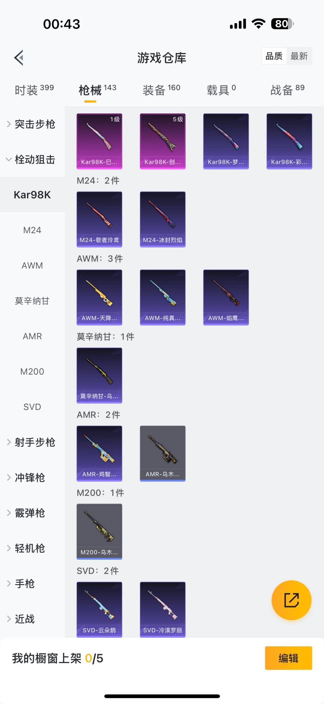 - [11523966]总资产:186.9 1干员外观 1近战传说 11传说枪械 高级安全箱(2×3)9.15号到期 可二次 可修改实名 烽火地带段位:钻石 全面战场段位:上等兵 哈夫币:2.384 传说武器皮肤:近战-北极星,SCAR-H战斗步枪-水墨云图,SR-25射手步枪-水墨云图,SCAR-H战斗步枪-铁艺苍穹,AK-12突击步枪-夜鹰,SMG45冲锋枪-骑士,复合弓-黑-天际线,CAR-15突击步枪-阿米娅,725双管霰弹枪-送葬人-无题密令,QCQ171冲锋枪-北极星,K437突击步枪-北极星 史诗武器皮肤:QBZ95-1突击步枪-ACE,M4A1突击步枪-特勤执行,AUG突击步枪-特勤执行,Vector冲锋枪-红色彗星,PTR-32战斗步枪-ACE,AUG突击步枪-蝮蛇,M700狙击步枪-蝮蛇,PKM通用机枪-蝮蛇,G3战斗步枪-战场英杰,SR-25射手步枪-尖端治疗,PKM通用机枪-荒野求生,AS Val突击步枪-尖端治疗,M700狙击步枪-守夜人,SG552突击步枪-尖端治疗,Ash-12战斗步枪-守夜人,MP5冲锋枪-深海恐惧,SR-3M紧凑突击步枪-荒野求生,勇士冲锋枪-深海恐惧,SG552突击步枪-深海恐惧,AKM突击步枪-林中猎手,.357左轮-幸运时刻,M16A4突击步枪-竞赛选手,PKM通用机枪-守夜人,M1014霰弹枪-林中猎手,SV-98狙击步枪-林中猎手,PSG-1射手步枪-无垢,SV-98狙击步枪-囚徒,QBZ95-1突击步枪-曙光,沙漠之鹰-曙光,K416突击步枪-竞技风,Vector冲锋枪-阿萨拉文明,SVD狙击步枪-阿萨拉工艺,S12K霰弹枪-曙光,AS Val突击步枪-刀锋,PKM通用机枪-英雄,M700狙击步枪-竞技风,QSZ92G-风林火山,AUG突击步枪-战术迷彩 干员外观:露娜-黑·天际线