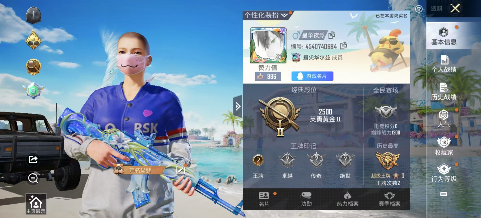 - PX_2042282- 苹果手Q-23王牌印记-有战神框-5粉装-3特效枪-0载具-82986热力值-201套装-257枪皮-1卓越印记-1传奇印记 【5粉装】,深海曼妙,迷蝶贵族,天启纪元,银刃赛罗,数码大师 【3特效枪】M16A4-葫芦兄弟-6级 M416-心之恋语-7级 M416-五爪金龙-6级 【10稀有紫装】,Mark.06,奇异狩猎者,暗影哥特,浪漫天命,雪山精英,浪漫波比,小丑鱼,