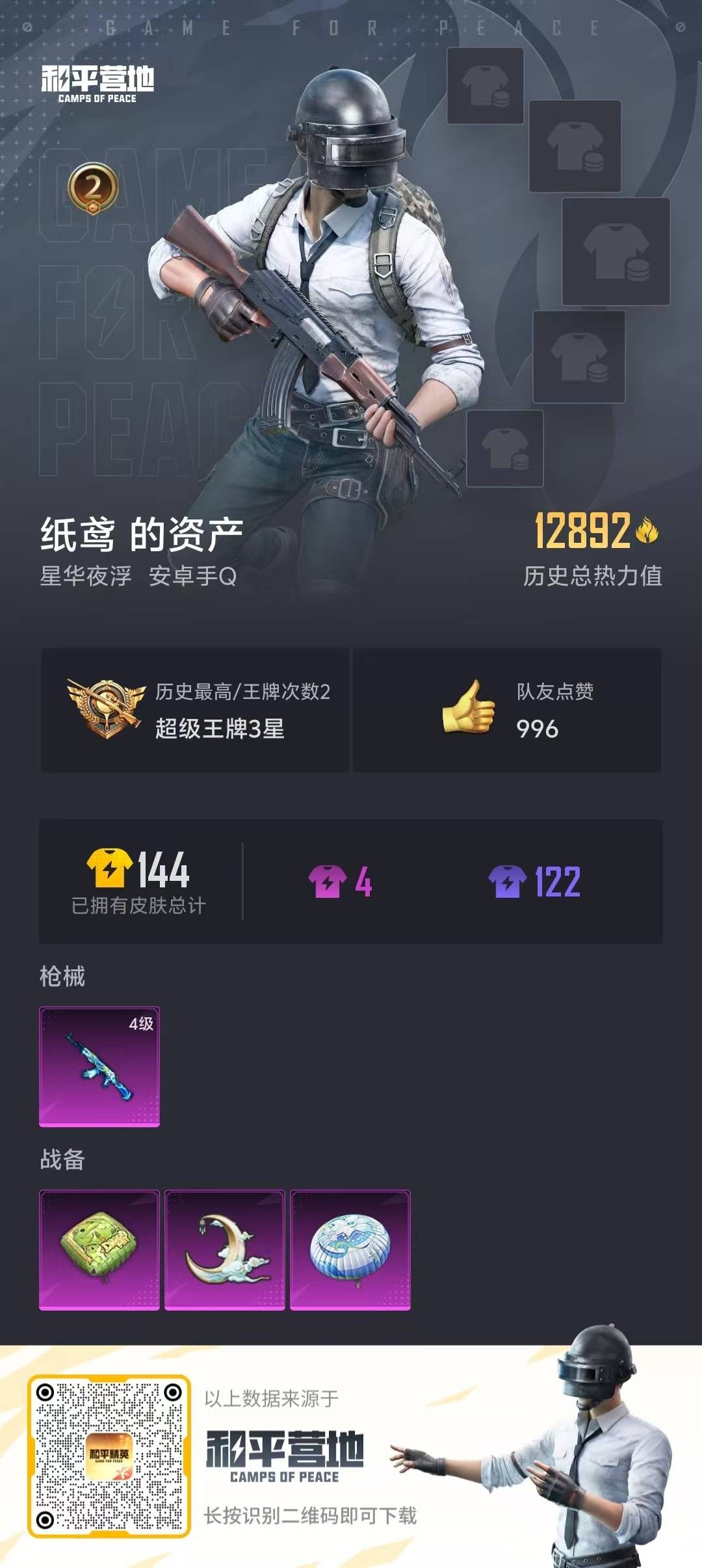 - PX_2094693- 苹果手Q-18王牌印记-7粉装-7特效枪-2载具-77484热力值-167套装-233枪皮-3卓越印记-1传奇印记 【7粉装】,梦幻火箭,幻彩电音,黄族统领,闲梦青缨,复仇流浪者,炙焰红王,音爆索尼克 【7特效枪】AKM-梦之光华-7级 SCAR-L-锦绣绵绵-5级 M416-五爪金龙-7级 Kar98K-巳巳如意-5级 Mk14-甜梦熊击-5级 UMP45-相思残雪-7级