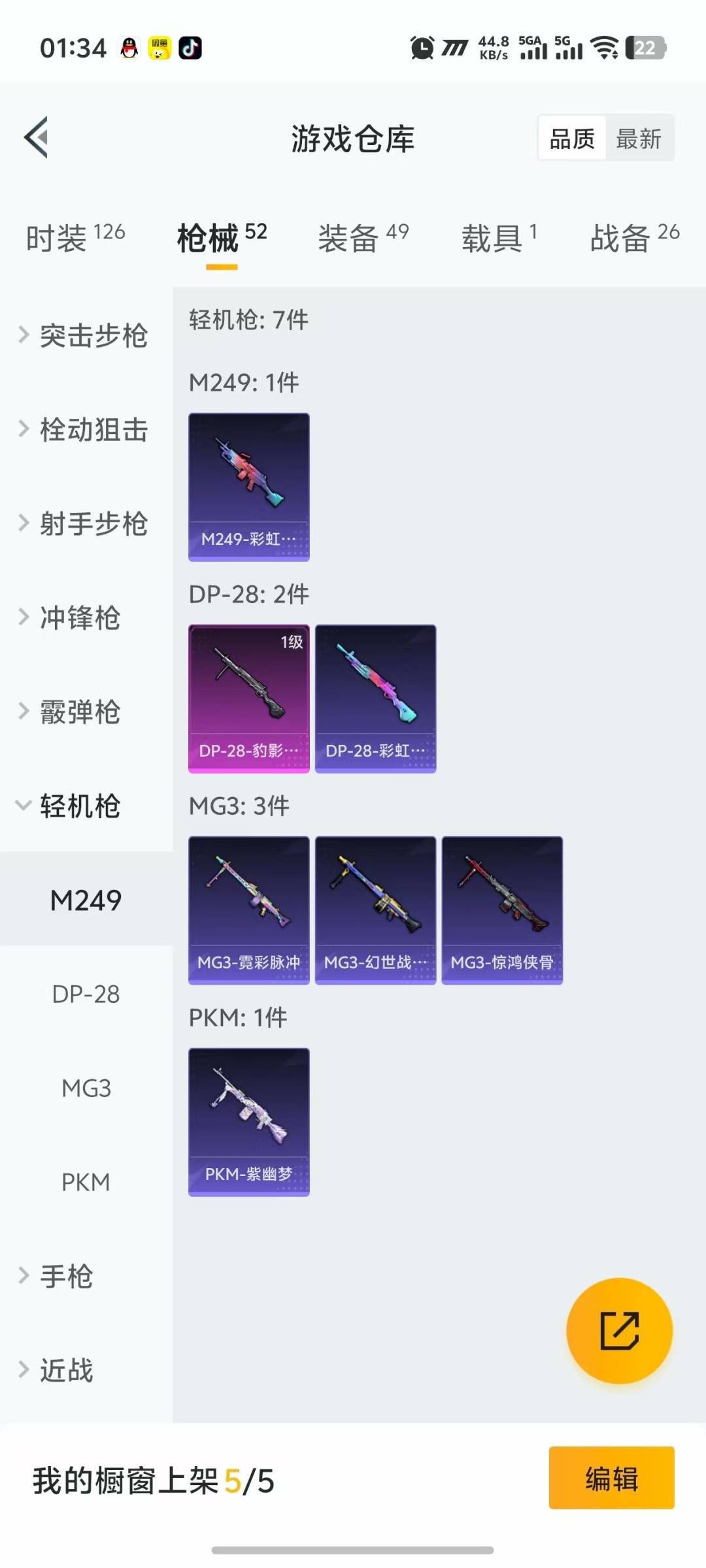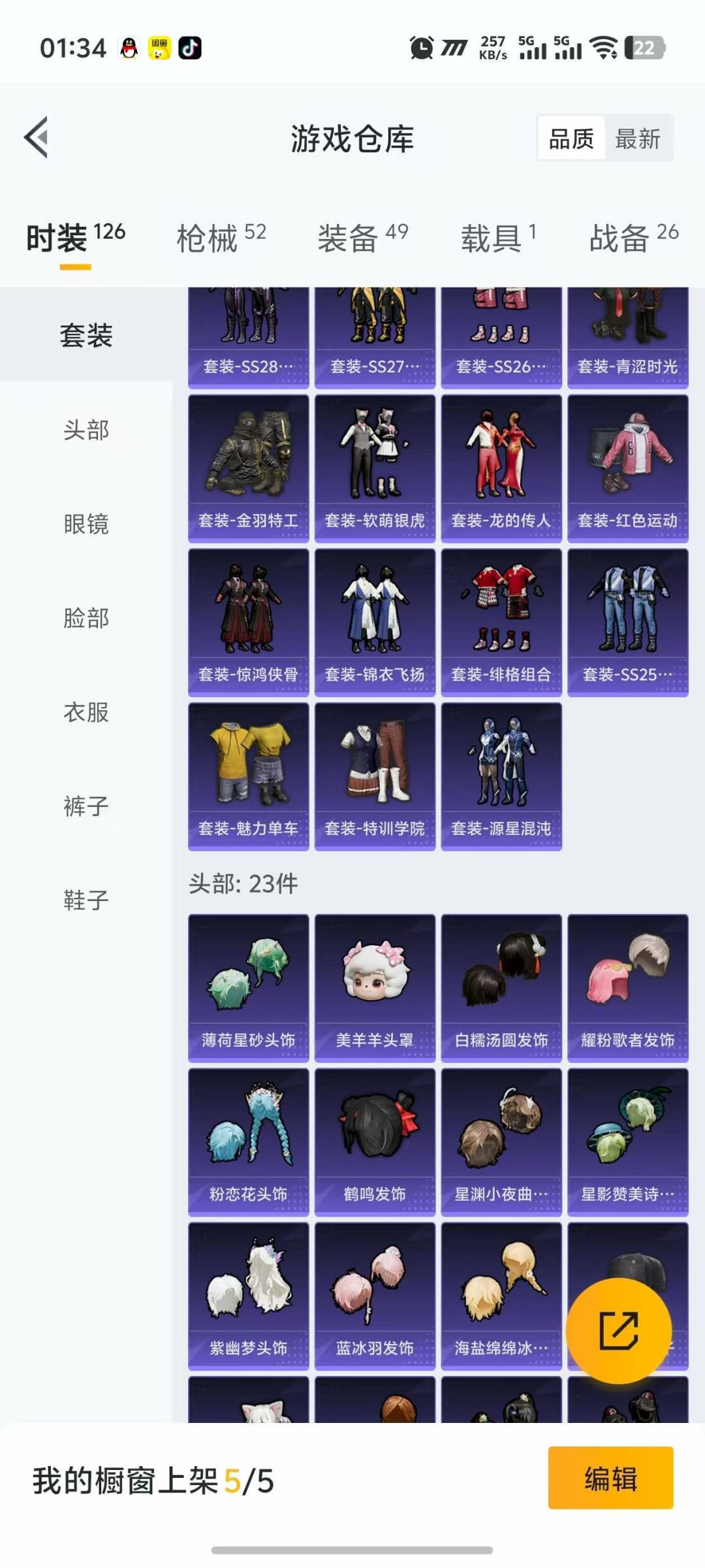 - [10060329]实名: 不可修改 时装数: 513 载具数: 1 枪械数: 170 战备数: 127 热门装扮: 碧影闪光,炫光之旅 载具: 幻影随行 稀有枪皮: Kar98K-巳巳如意