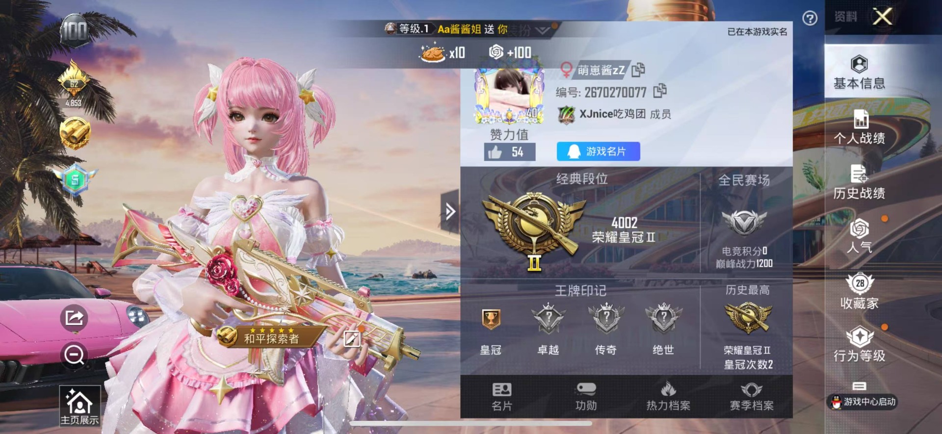 - PX_2087825- 可二次 苹果手Q-10王牌印记-12粉装-4特效枪-1载具-74464热力值-157套装-213枪皮-0卓越印记-0传奇印记 【12粉装】,梦幻火箭,天使彩虹糖,缤纷油彩,蝶舞迷情,狂花道·不知火舞,精灵迷巫,甜蜜誓约,金属狂野,智能音符,圣堂之誓,向日葵,冰川幽秘 【4特效枪】,AKM-炫紫旋律-7级 M416-五爪金龙-7级 Kar98K-伏魔团-7级 AMR-智耀战神