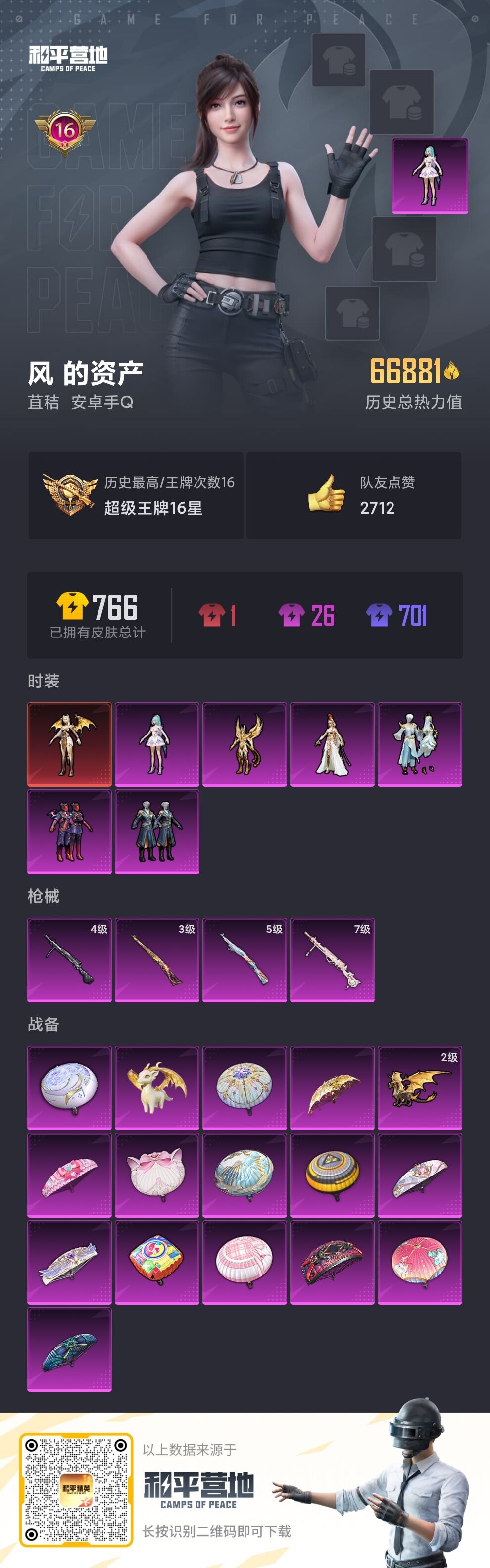 - PX_2072990-时装数: 66 枪械数: 85 战备数: 63 热门装扮: 星云暗核,圣堂之誓 稀有枪皮: AKM绿萝繁花