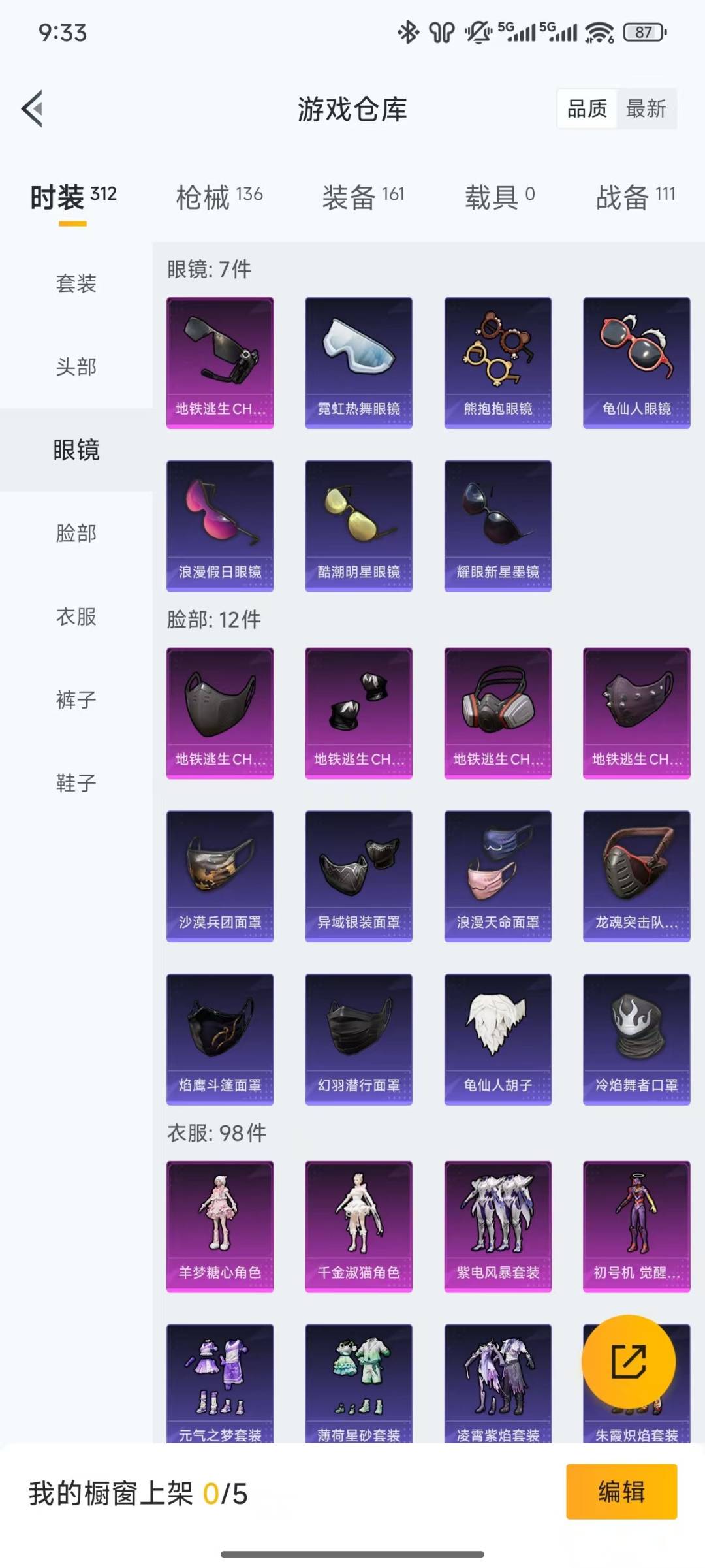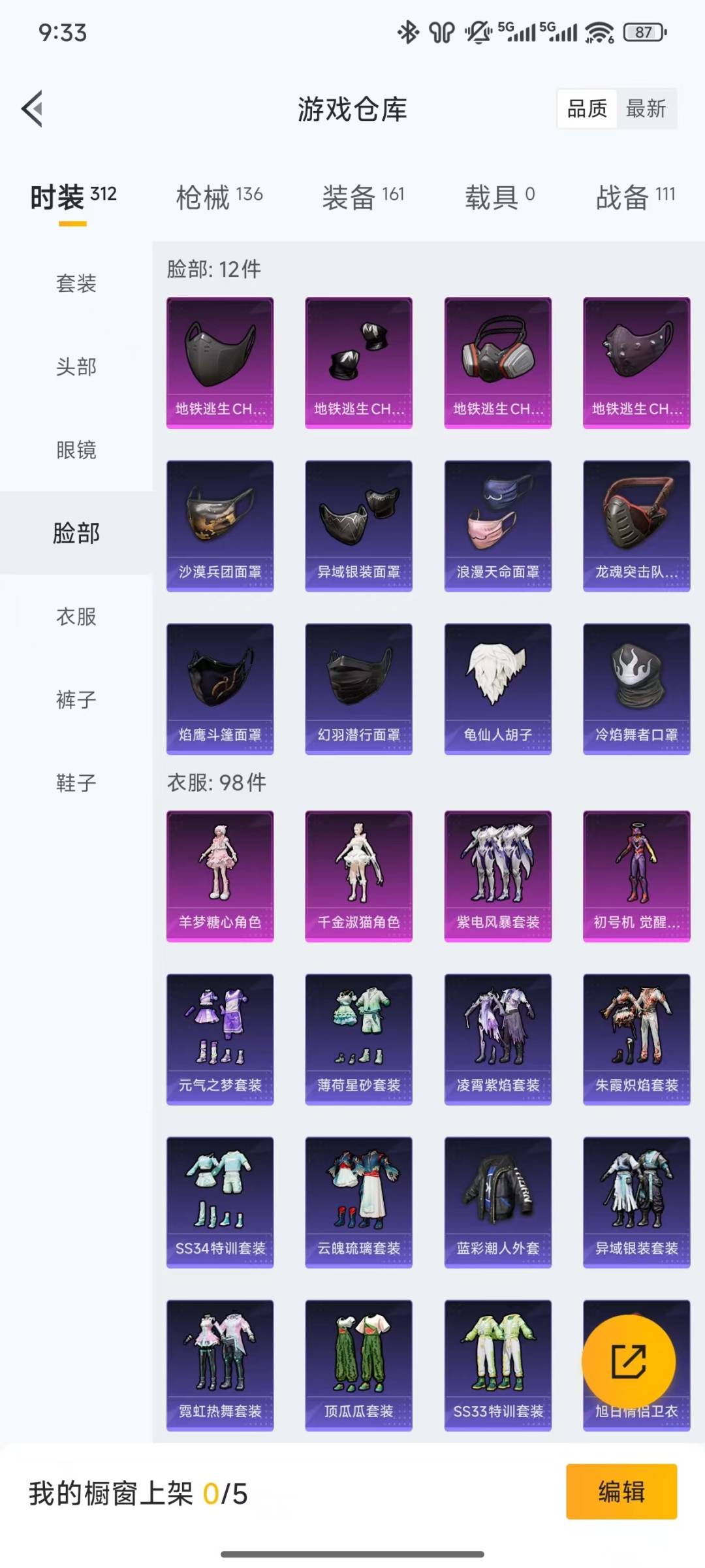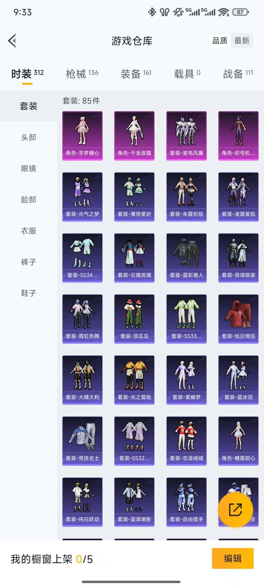 [11386172]4粉装 4特效枪 9印记 可二次 可修改实名 身法装备:初号机 觉醒Ver.(新紫螳螂),Mark.06(新蓝螳螂) 优质装备:UMP45量子极限,千金淑猫,GROZA-镜光银凌,羊梦糖心,Kar98K-巳巳如意 热门装扮:紫电风暴,初号机 觉醒Ver.(新紫螳螂) 稀有枪皮:DP-28-豹影疾电 五级特效枪:五级UMP45-量子极限,五级GROZA-镜光银凌,五级Kar98K-巳巳如意,五级DP-28-豹影疾电 紫色装扮:浪漫假日,SS31特训套装,冷焰舞者,千禧之恋,霓虹热舞,旭日情侣,SS33特训套装,顶瓜瓜,长空猛禽,霓虹街区,缤纷果语,耀眼新星,蓝彩潮人,魅力单车,黄色运动,龙的传人,龟仙人,冰河战士,龙魂突击队,蝶变,香桃花海,夏日倾情,登山爱好者,白色伏地魔,破蛋小黄鸡,空岛之星,燃烧卡路里,粉日山川,小熊娃娃,雏菊兔兔,萝兰蝴蝶,SS29特训,创世·幻影,纯真浪花,热情海星,SS28特训,卖崽青蛙,创世·追猎,奶油梦幻熊,Mark.06(新蓝螳螂),光矢逐梦,异域银装,鱼渊荷华,燕燕于飞,海琴烟,熊抱抱,青团波波,糖糖葫芦,棉花软糖,竞技名士,摩登魅猫,街头风暴,银尘,情公主,焰鹰斗篷,幻羽潜行,SS27特训,浪漫天命,小丑鱼,智谋强哥,大橘大利,蓝冰羽,紫幽梦,SS32特训服(SS32特训套装),绯格组合,自由猎手,纯白跃动,蓝调潮影,糖霜甜心,恋语绒绒,光之冒险 优质战备:墨龙九天降落伞,精灵梦叶罗丽降落伞,初号机 觉醒Ver.降落伞,江南烟雨降落伞,镜域双华-灵镜之阶,喜羊羊与灰太狼降落伞,鬼刀降落伞,金蛇镇世降落伞,智耀战神降落伞